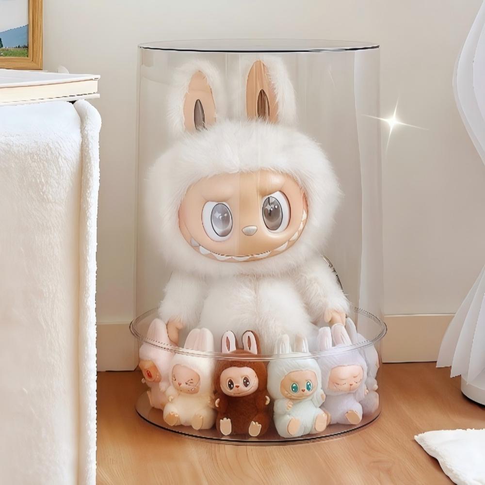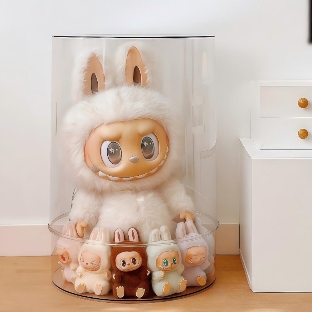 LABUBU/ZIMOMO対応 円筒型 大型 ディスプレイケース 高透明アクリル 防塵カバー ぬいぐるみ 収納ボックス 57×38.5cm