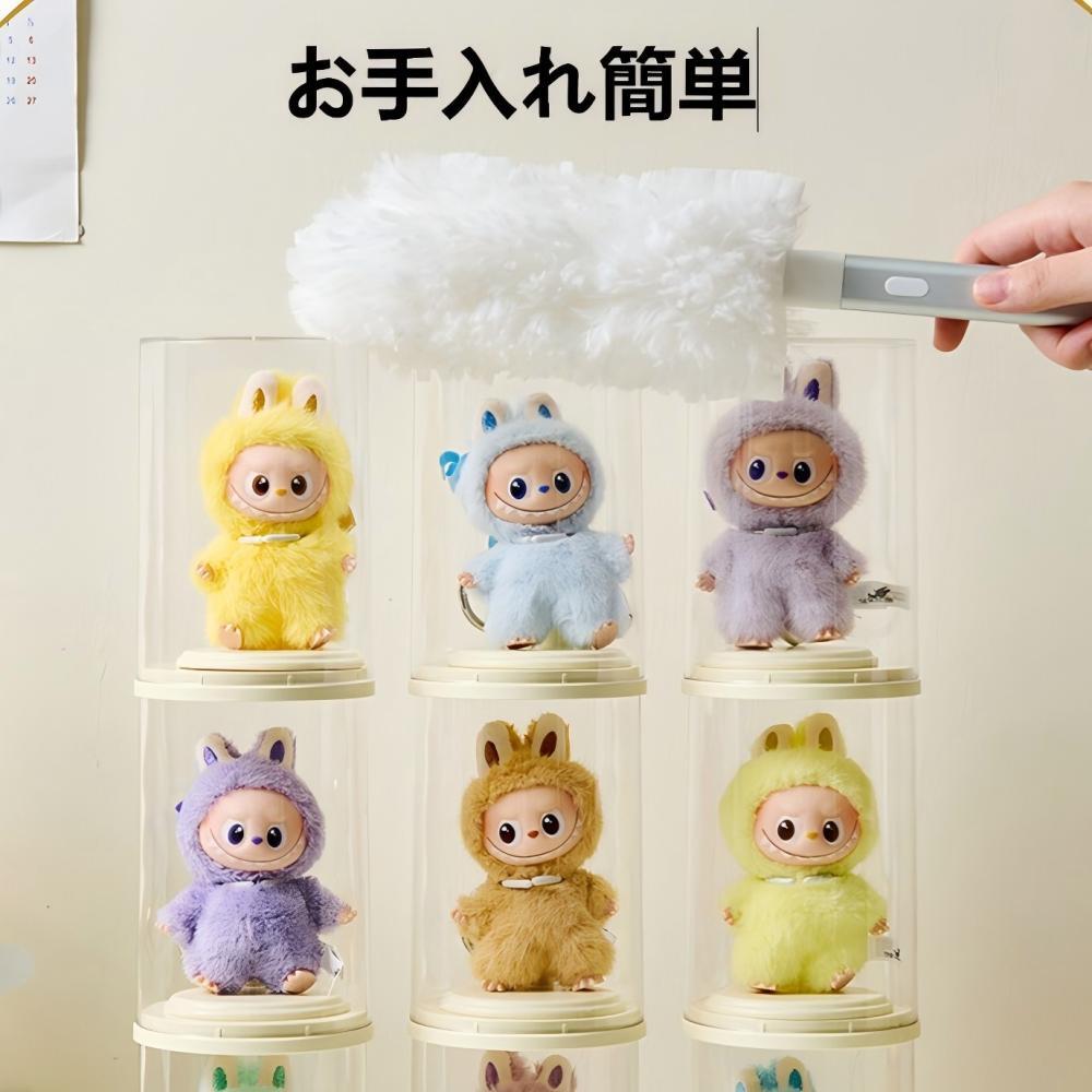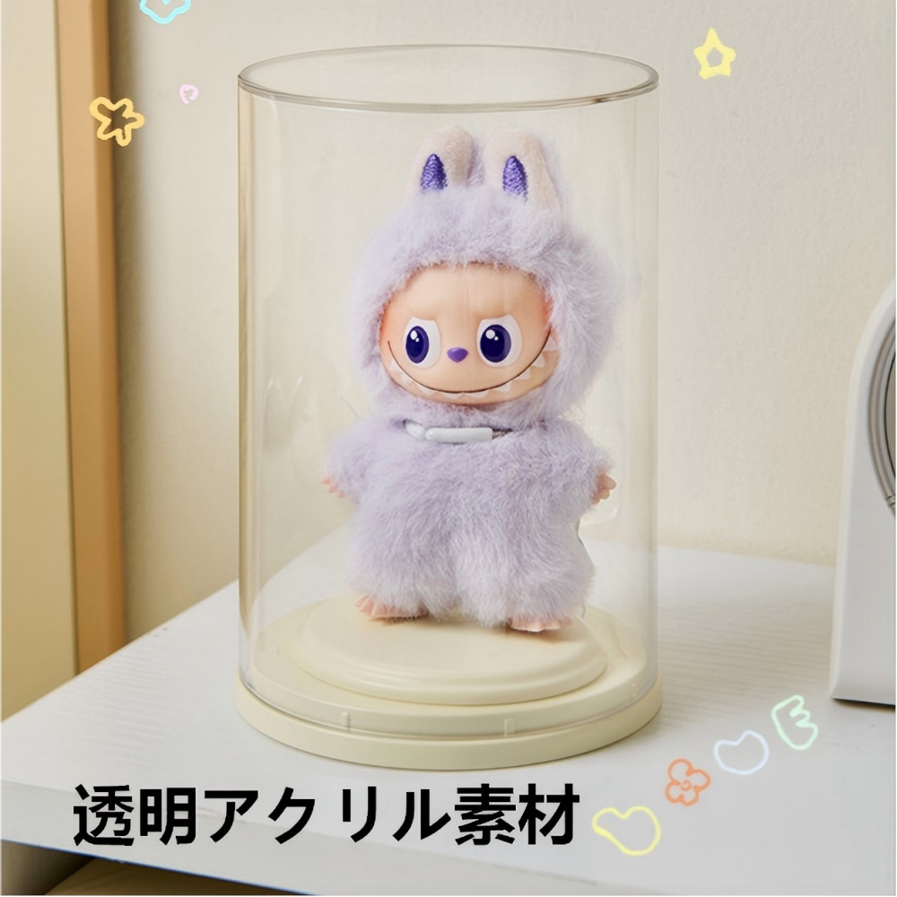 LABUBU 4世代対応 透明 ディスプレイケース アクリル 固定スタンド付き 防塵カバー ラブブ 収納ボックス 13.2×9cm 1個入り