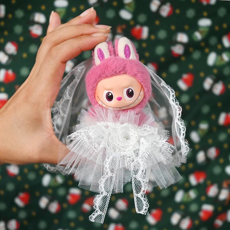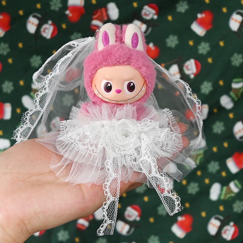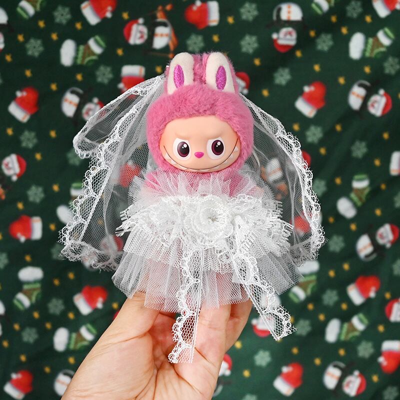 ラブブ 4世代対応 ウェディングドレス レース ワンピース+ベール Labubu ぬいぐるみ 着せ替え服 2点セット ホワイト