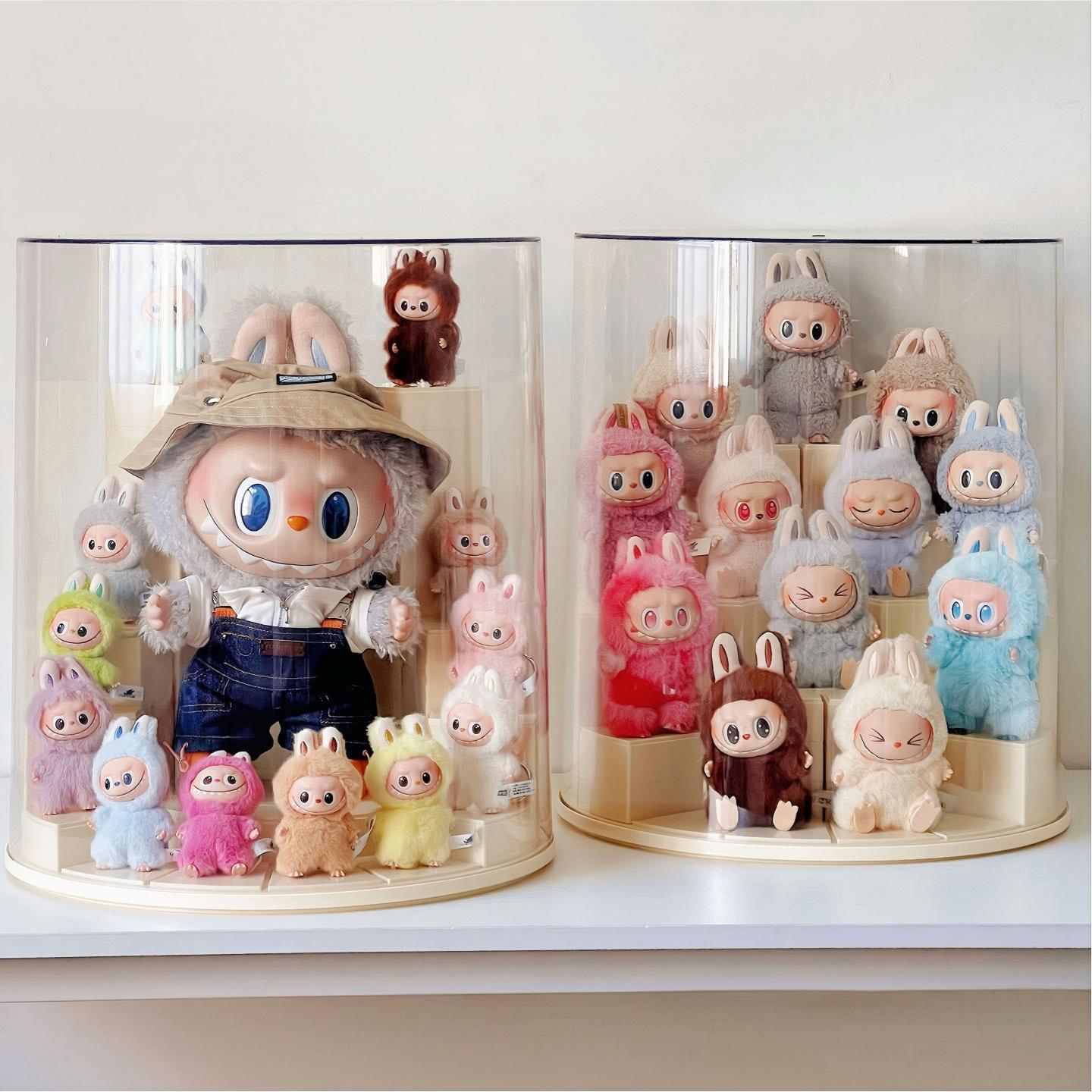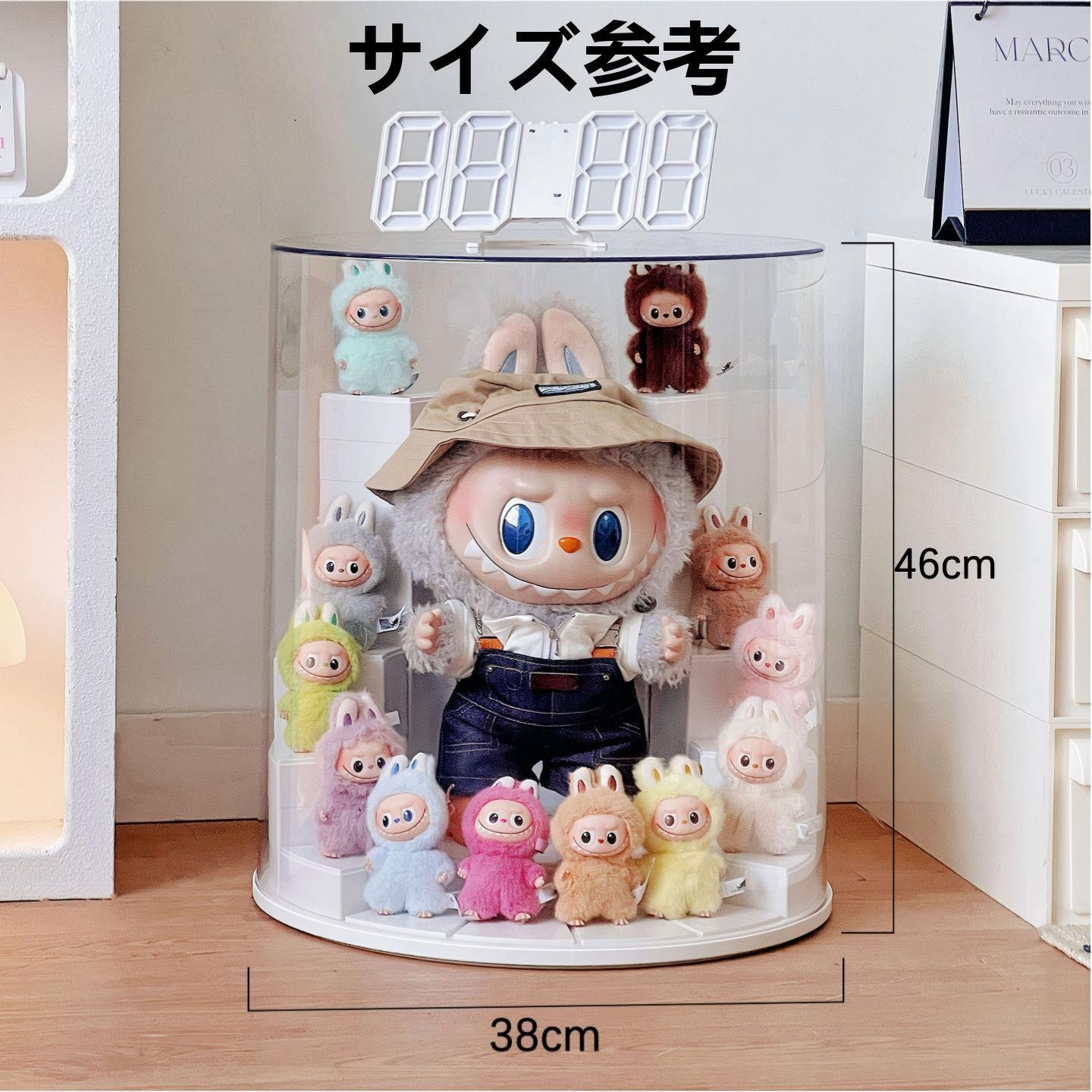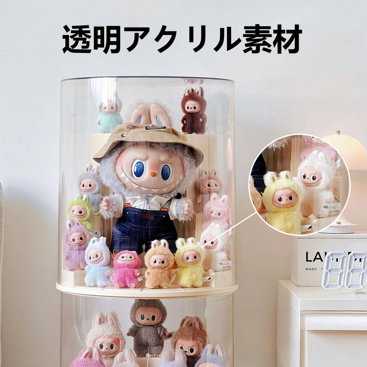 LABUBU 1-4世代/38cm対応 透明 ディスプレイケース アクリル モジュール式 360度回転 防塵 収納ボックス 46×38cm イエロー/ホワイト