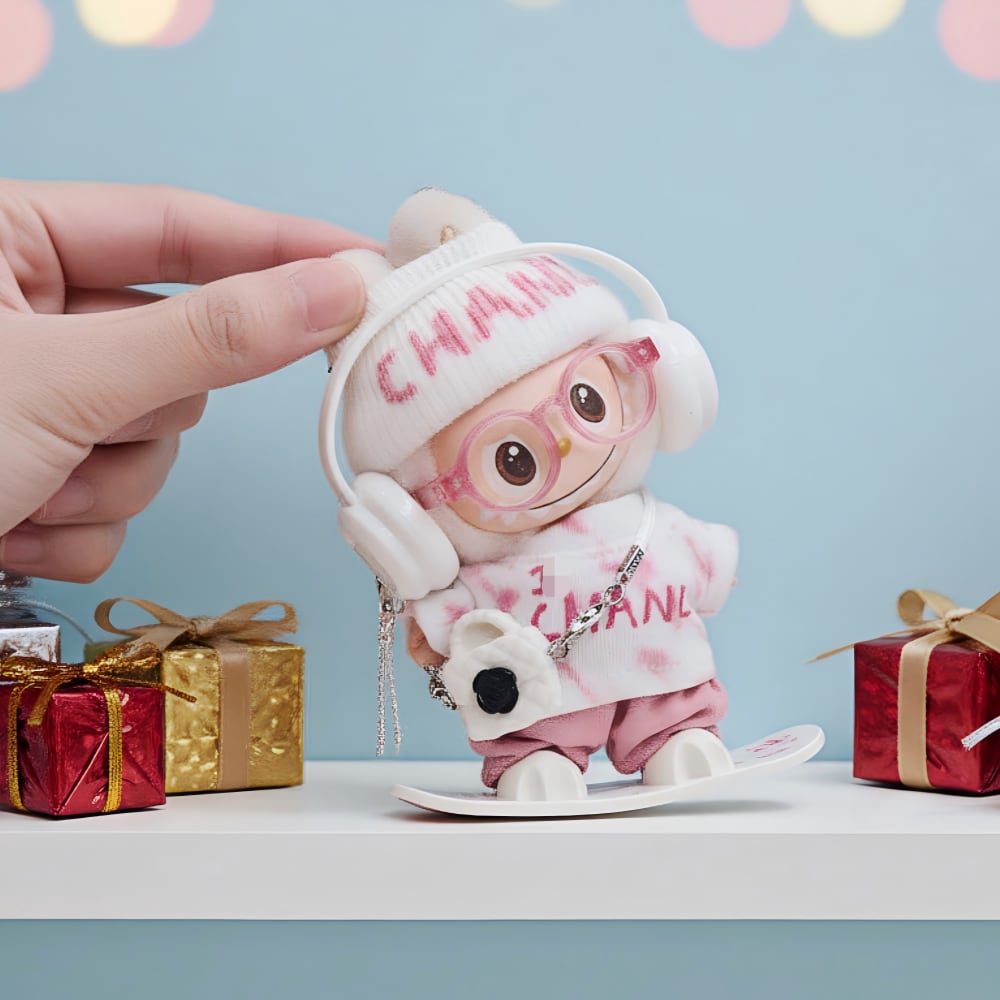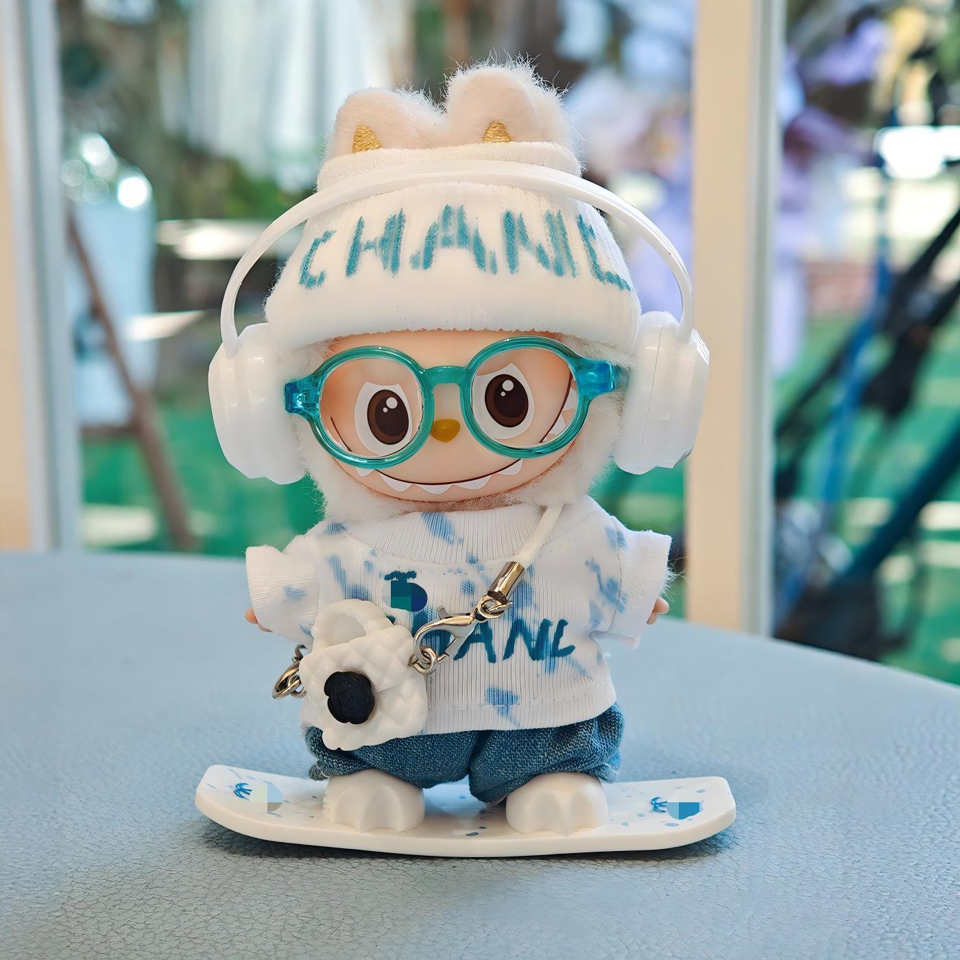 【セット内容】トップス+パンツ+ニット帽+メガネ+ヘッドホン+スノーボード+チャーム