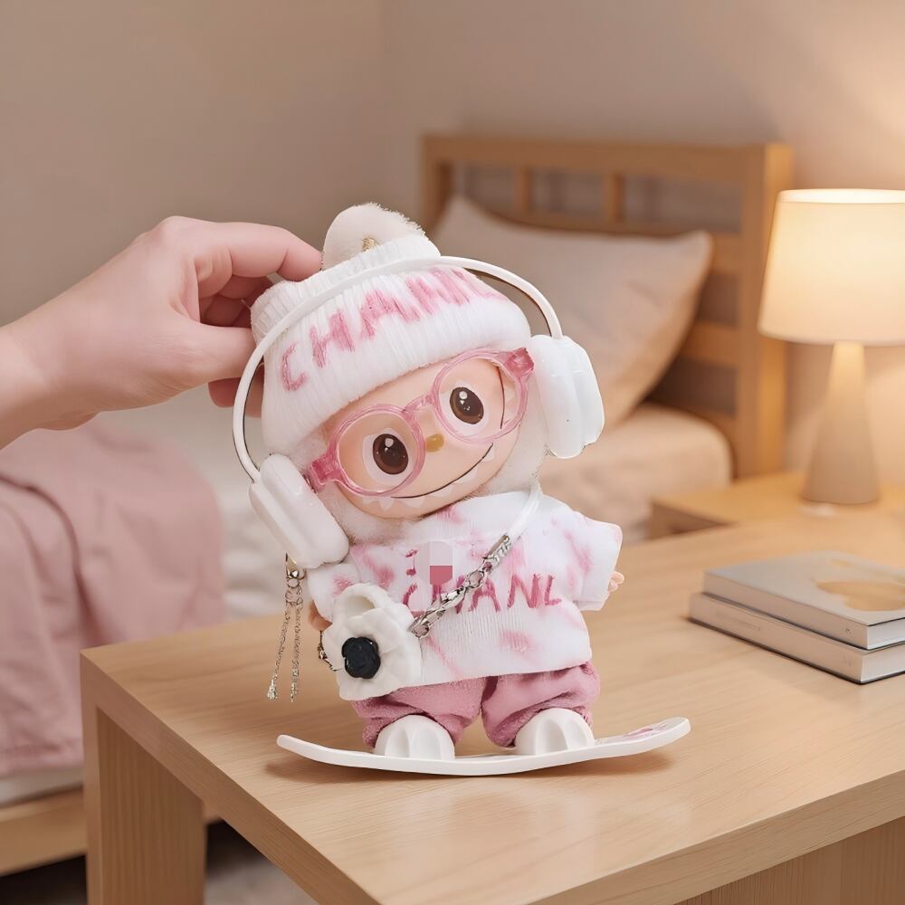 LABUBU 4世代対応 ウィンタースポーツ スキーウェア ラブブ ぬいぐるみ用 着せ替え服 7点セット ピンク/ブルー