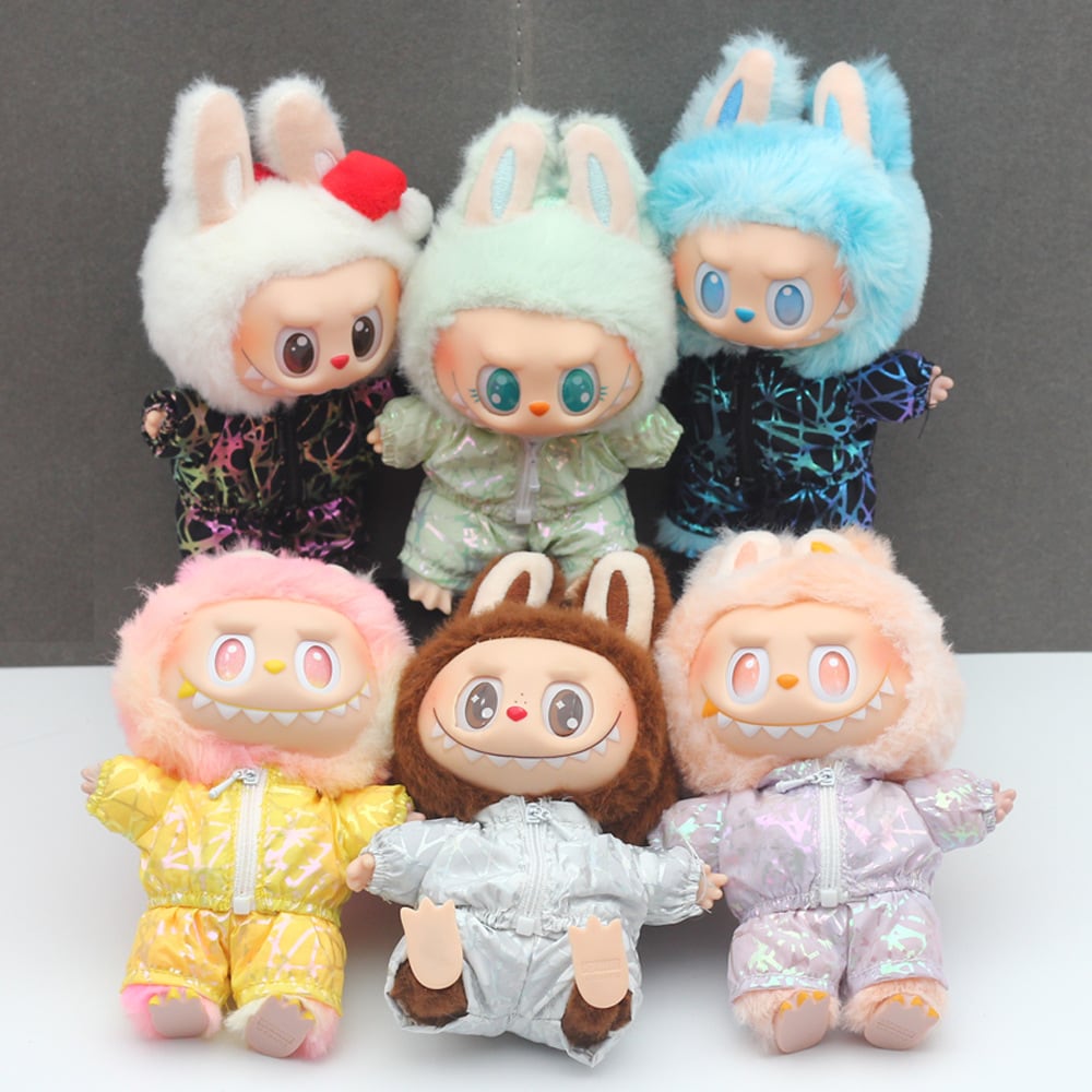LABUBU 1-3世代対応 キラキラ おしゃれ スポーツウェア ジャケット+パンツ ラブブ ぬいぐるみ 着せ替え服 2点セット 8色