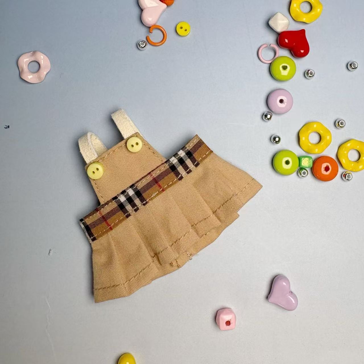 ラブブ 4世代対応 サマー チェック ジャンパースカート+バケットハット LABUBUぬいぐるみ おしゃれ ワンピース 着せ替え服 2点セット
