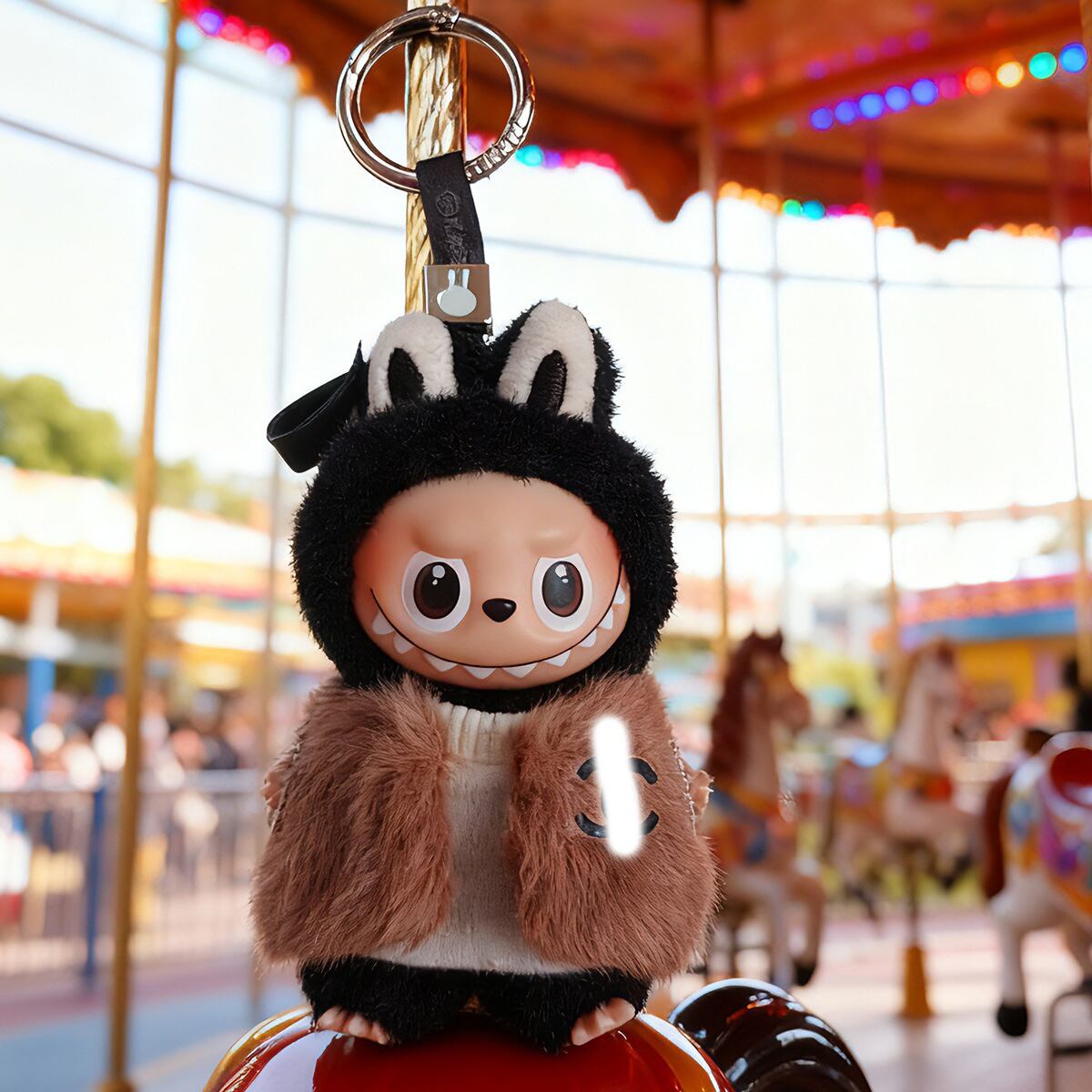 LABUBU 4世代対応 秋冬 ニットトップス+ふわふわ ベスト ジャケット ラブブ ぬいぐるみ用 着せ替え服 2点セット 4色