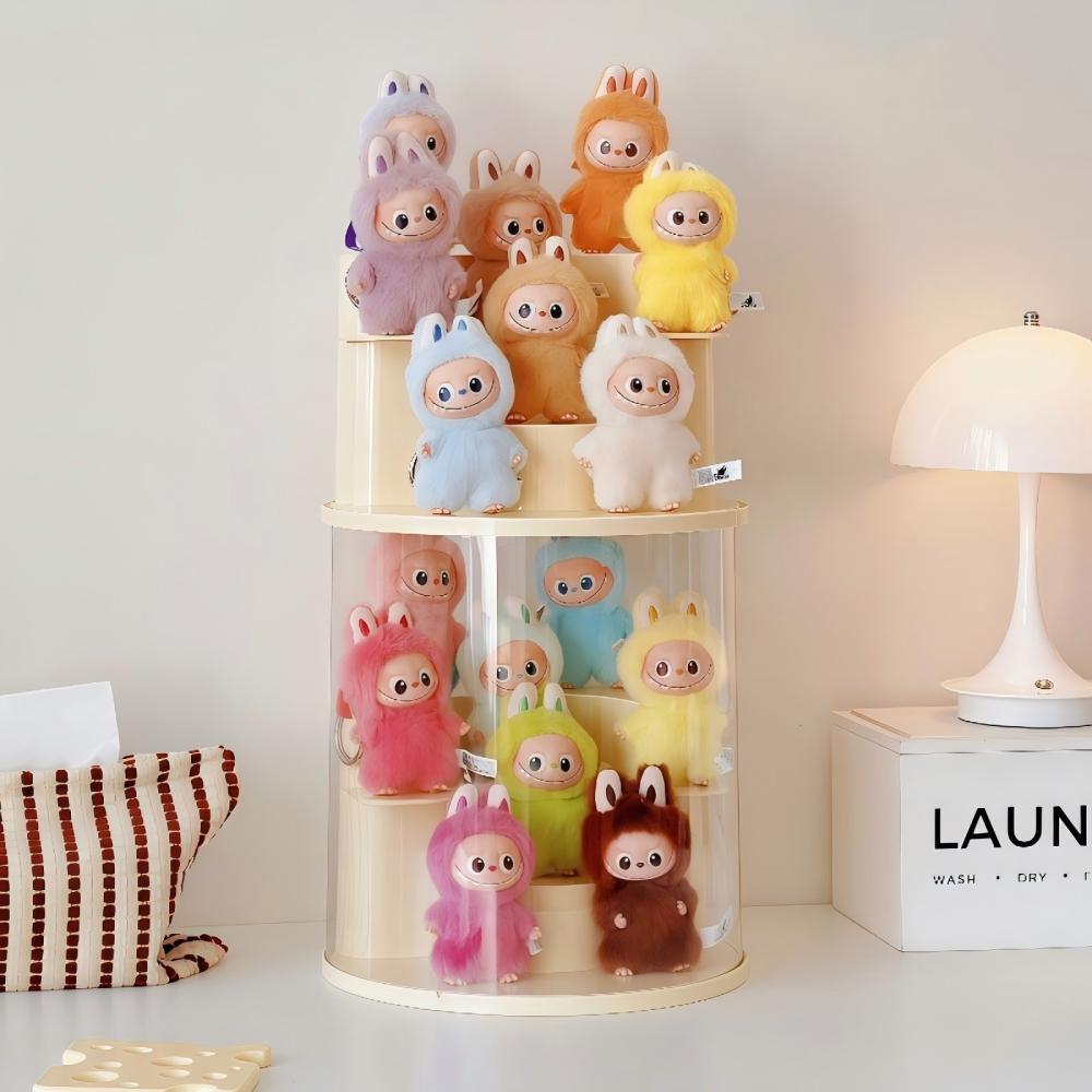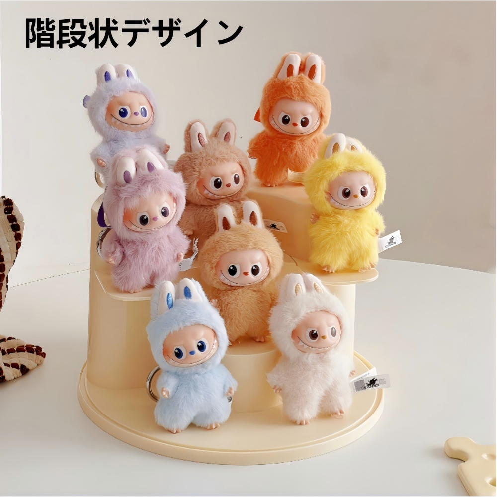 LABUBU 4世代対応 ステップ式 ディスプレイケース アクリル 防塵 8-10体収納 収納ボックス 24.7×22.6cm イエロー/ホワイト