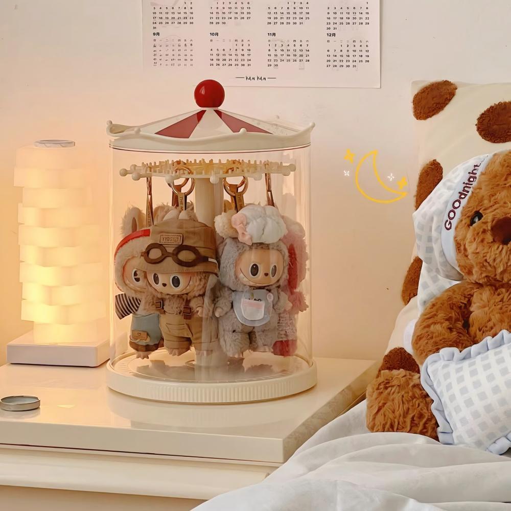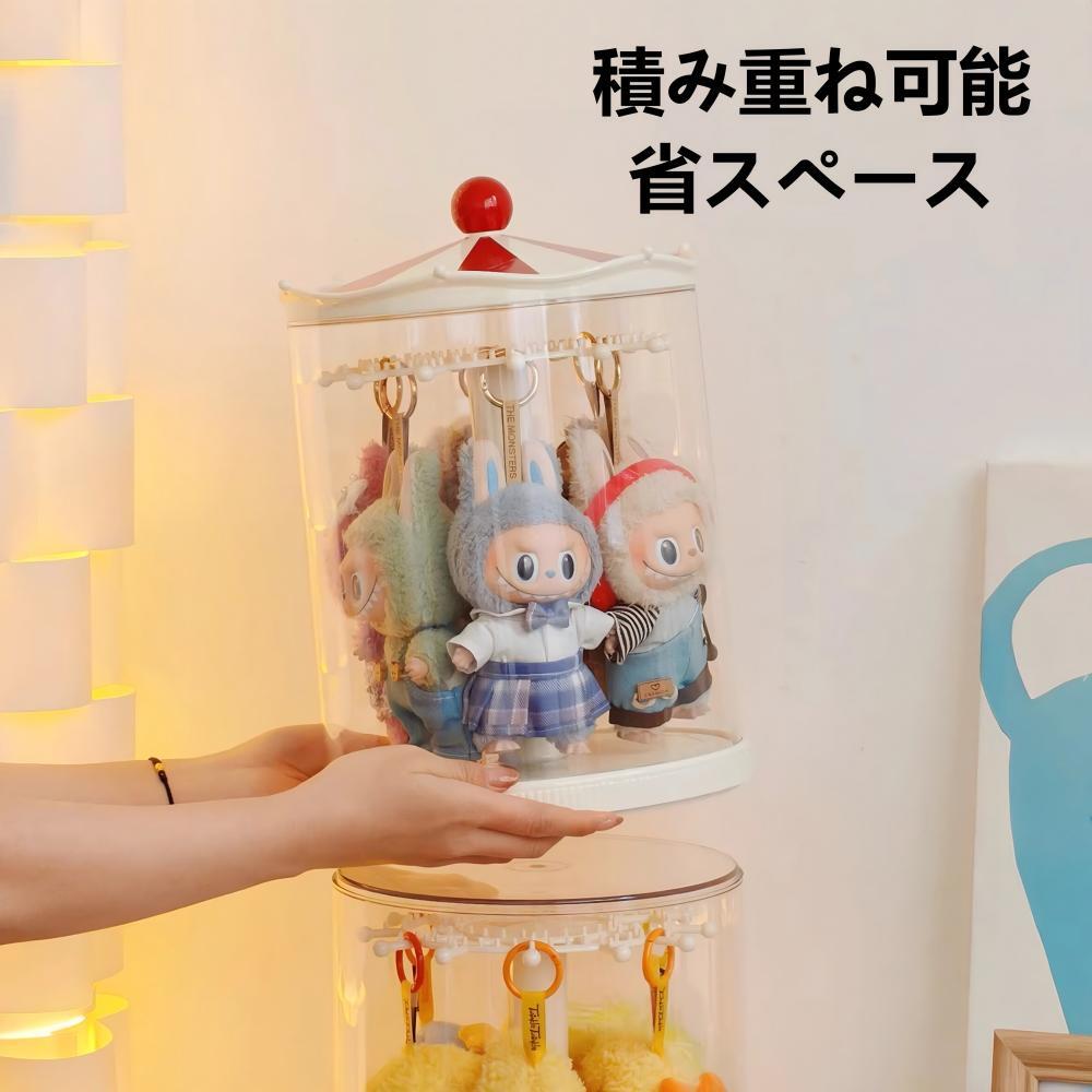 LABUBU 1-3世代/18cm以下対応 アクリル 遊園地 ディスプレイケース 360度回転 ぬいぐるみ12個収納可能 収納ボックス 35×24cm