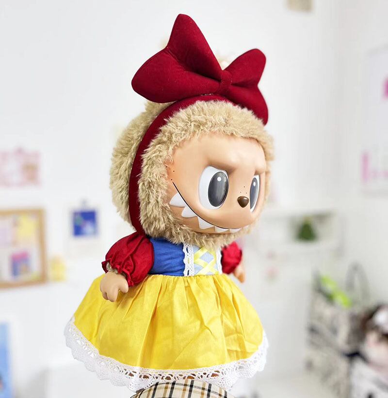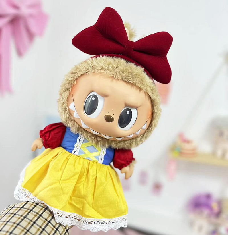 38cm LABUBU対応 プリンセス カラーブロック ワンピース + ヘアアクセ ラブブ ぬいぐるみ用 着せ替え服 2点セット