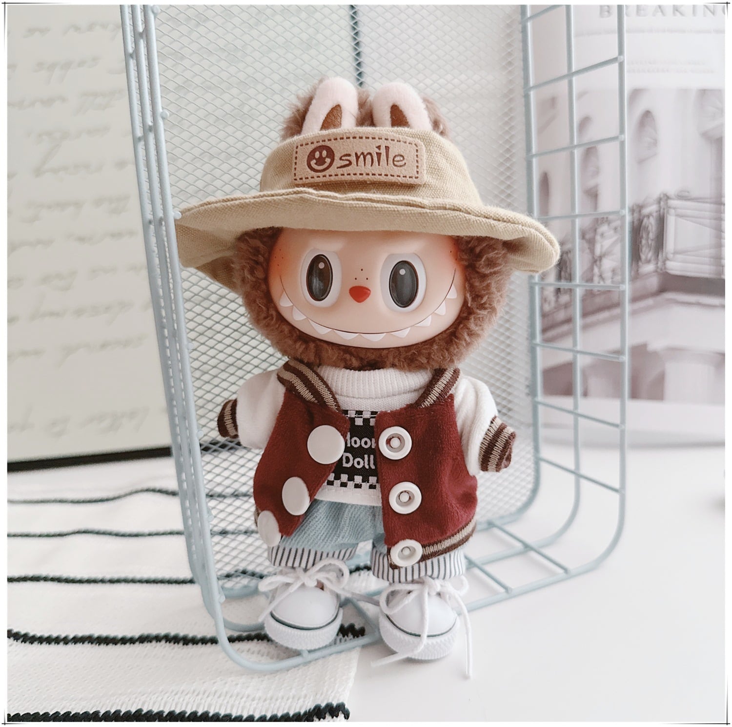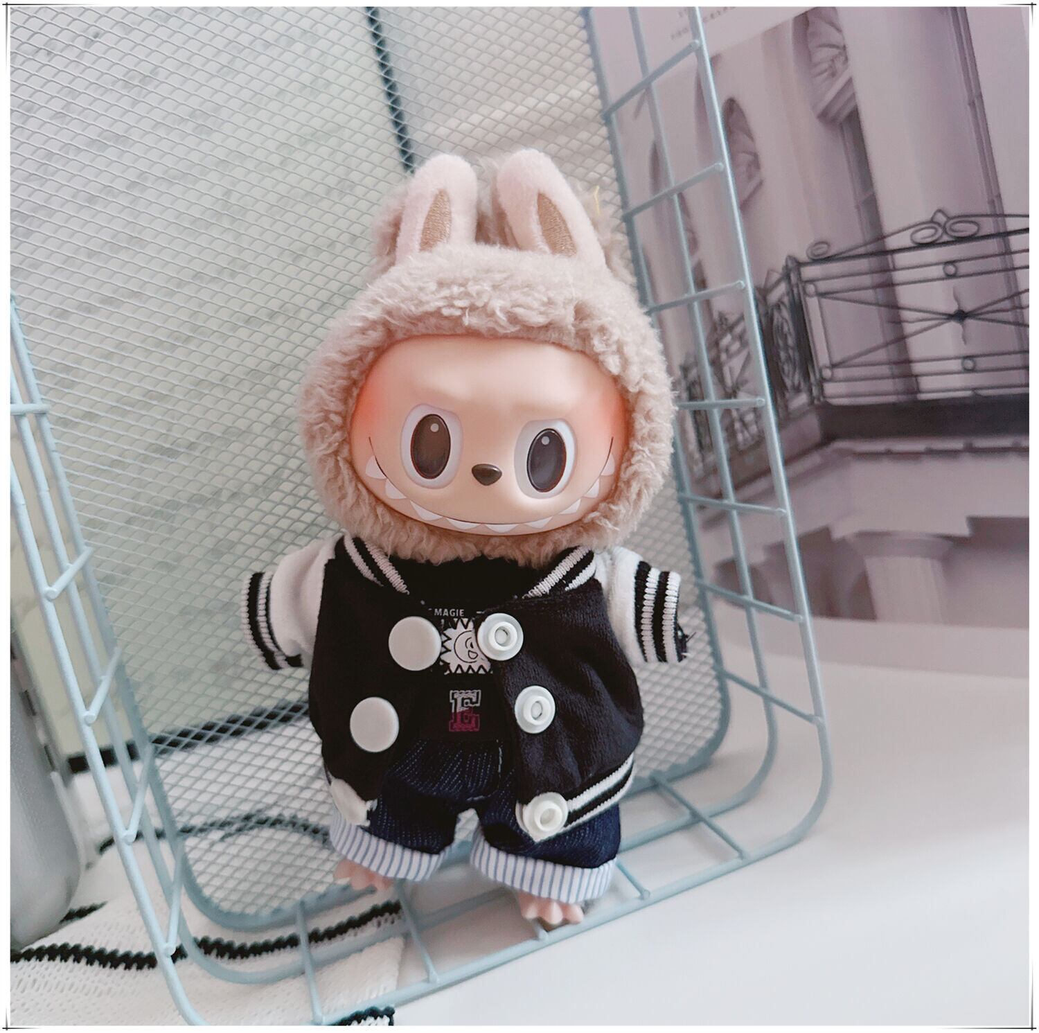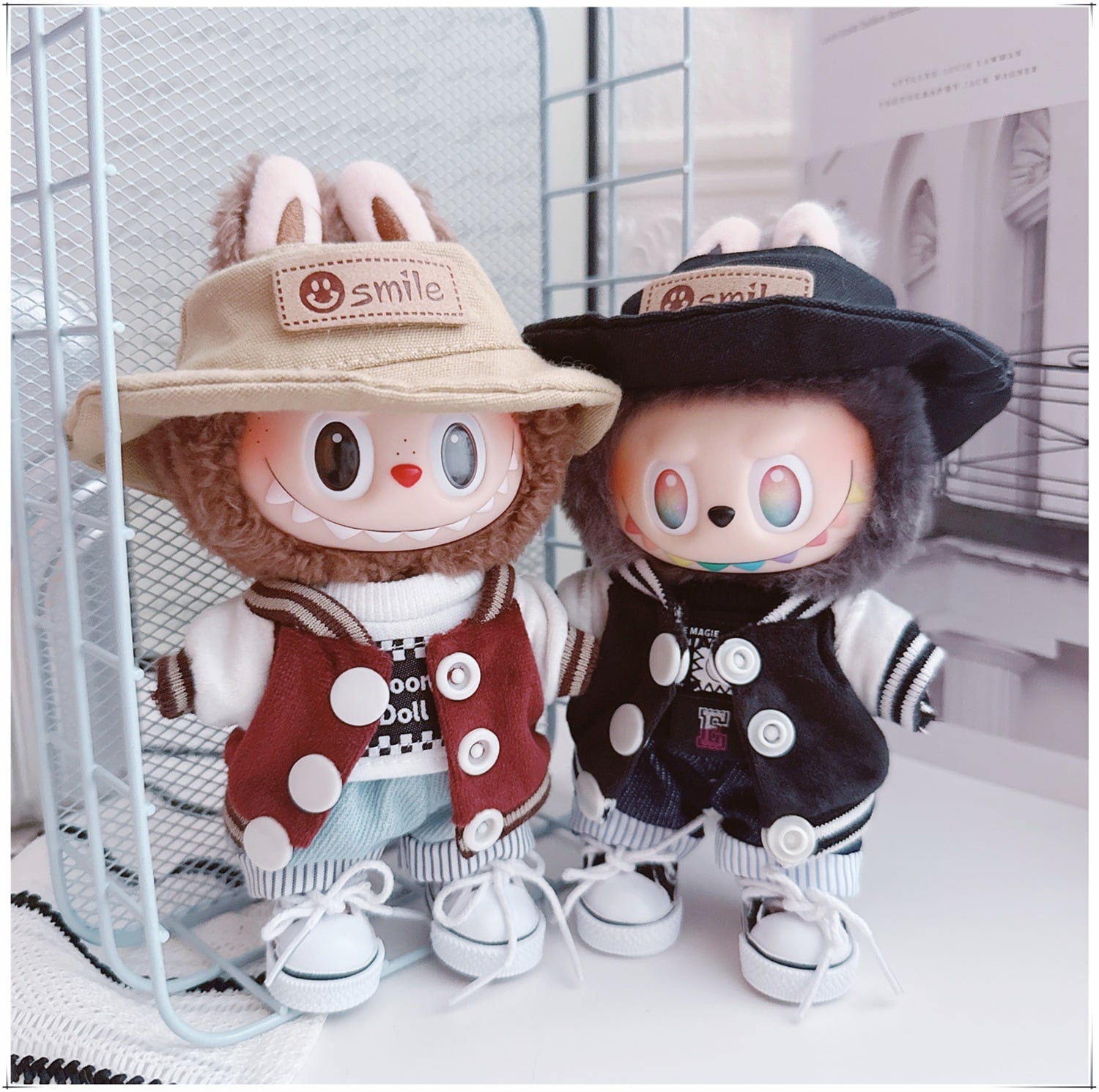 ラブブ 1-3世代対応 カジュアル Tシャツ+デニムパンツ+野球ジャケット+帽子+靴 LABUBU ぬいぐるみ用 着せ替え服 5点セット 2色