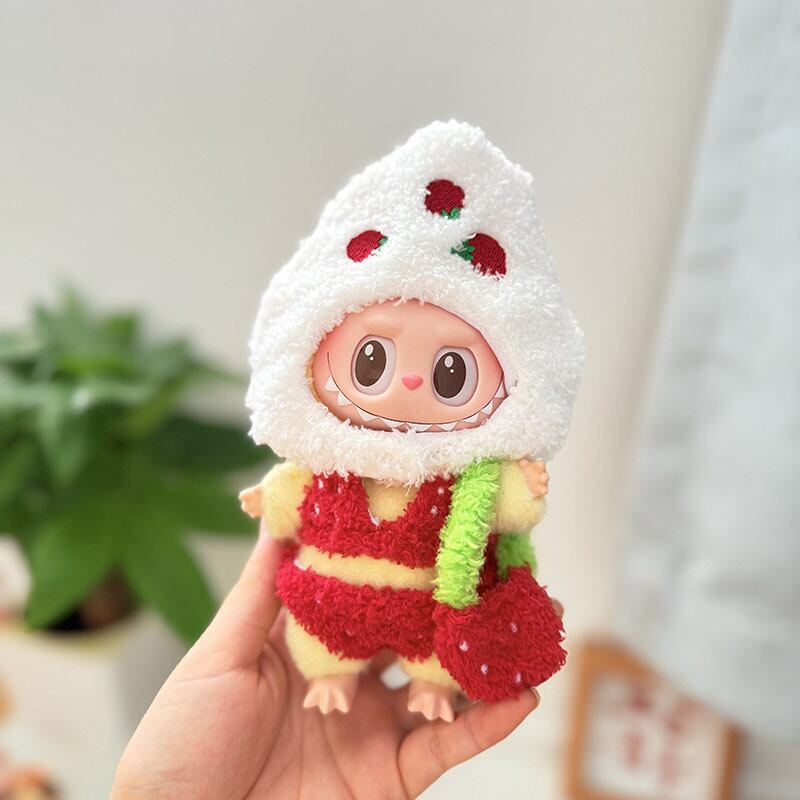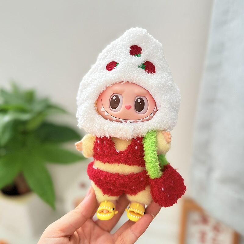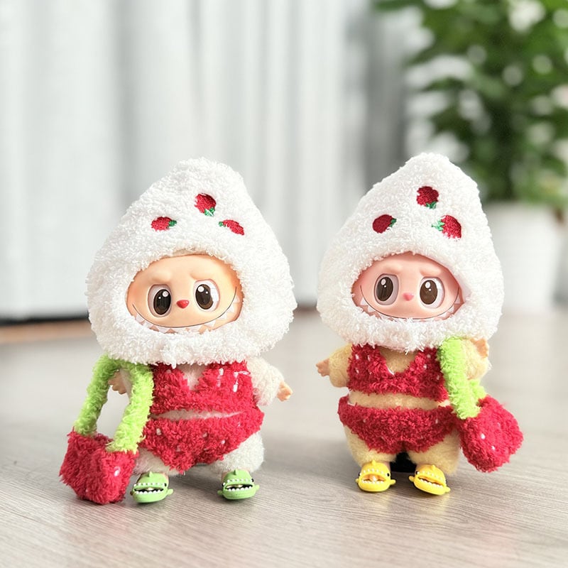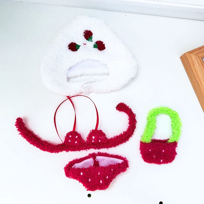 Labubu 1-3世代対応 ビーチストロベリー 水着 ぬいぐるみ用 トップス+パンツ+パック+帽子+靴 5点セット
