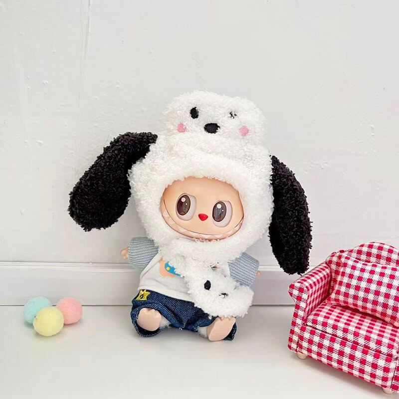 ラブブ 1-3世代対応 可愛い パピー Tシャツ+デニムパンツ+もこもこ帽子+パック LABUBU ぬいぐるみ用 着せ替え服 4点セット