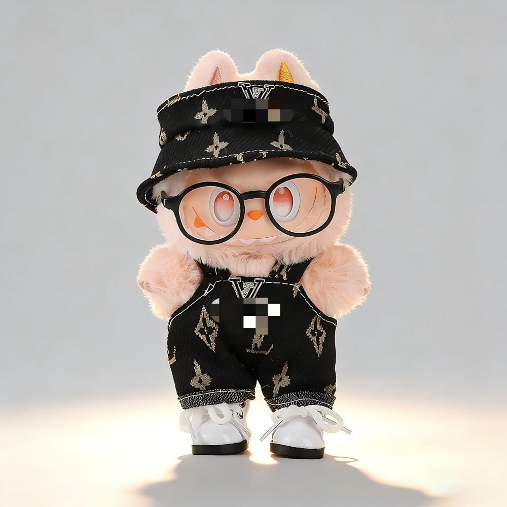 LABUBU 1-3世代対応 カジュアル サロペット+帽子 ラブブ ぬいぐるみ用 おしゃれ 着せ替え服 2点セット 3色