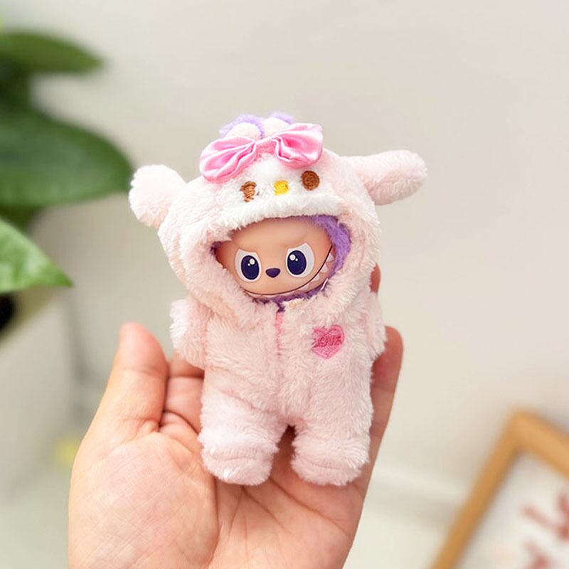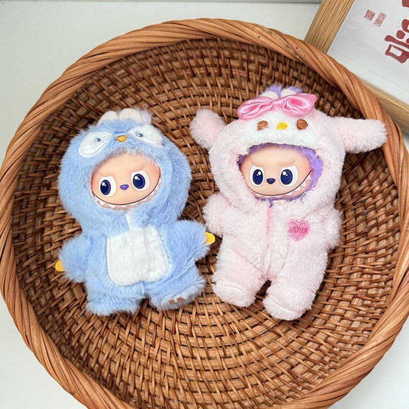 ラブブ 4世代対応 もこもこ ペンギン ロンパース LABUBU ぬいぐるみ用 着せ替え服 アクセサリー ピンク/ブルー