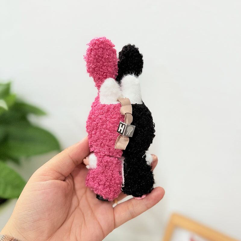 甘辛ミックスのバイカラーラビット、もこもこ素材で温かみある見た目