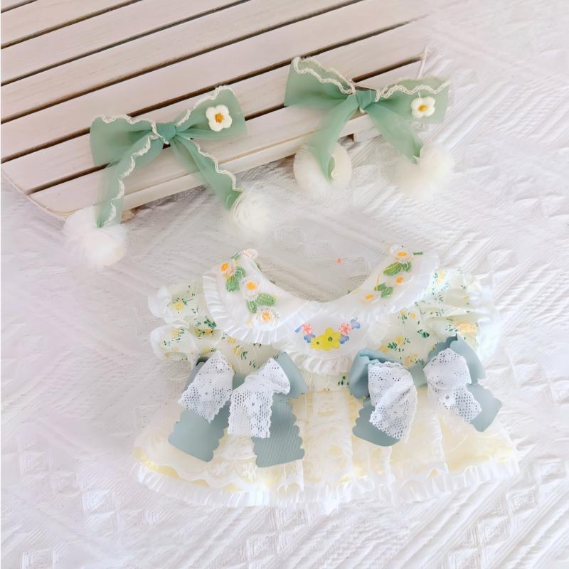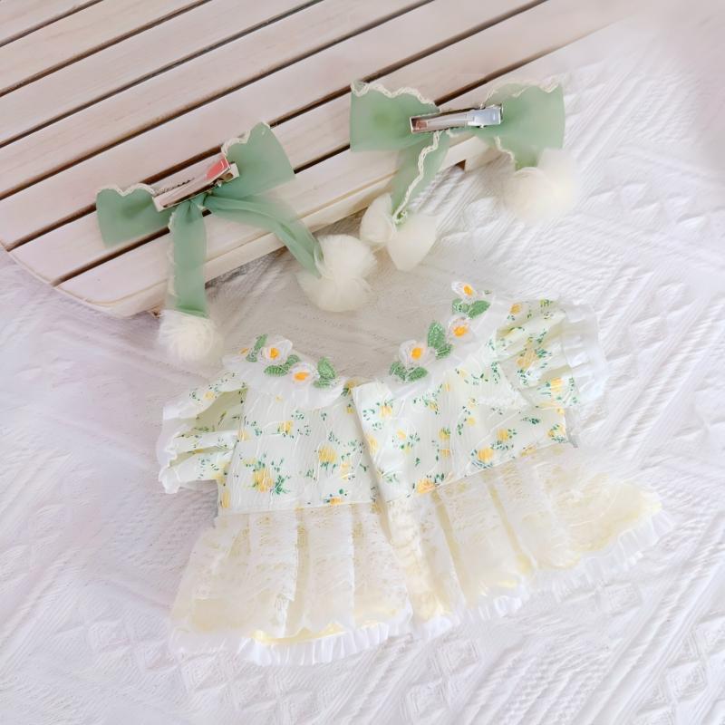 20cmぬいぐるみ対応 エレガント フラワーレース ワンピース+ヘアアクセ+靴 着せ替え服 3点セット ホワイト