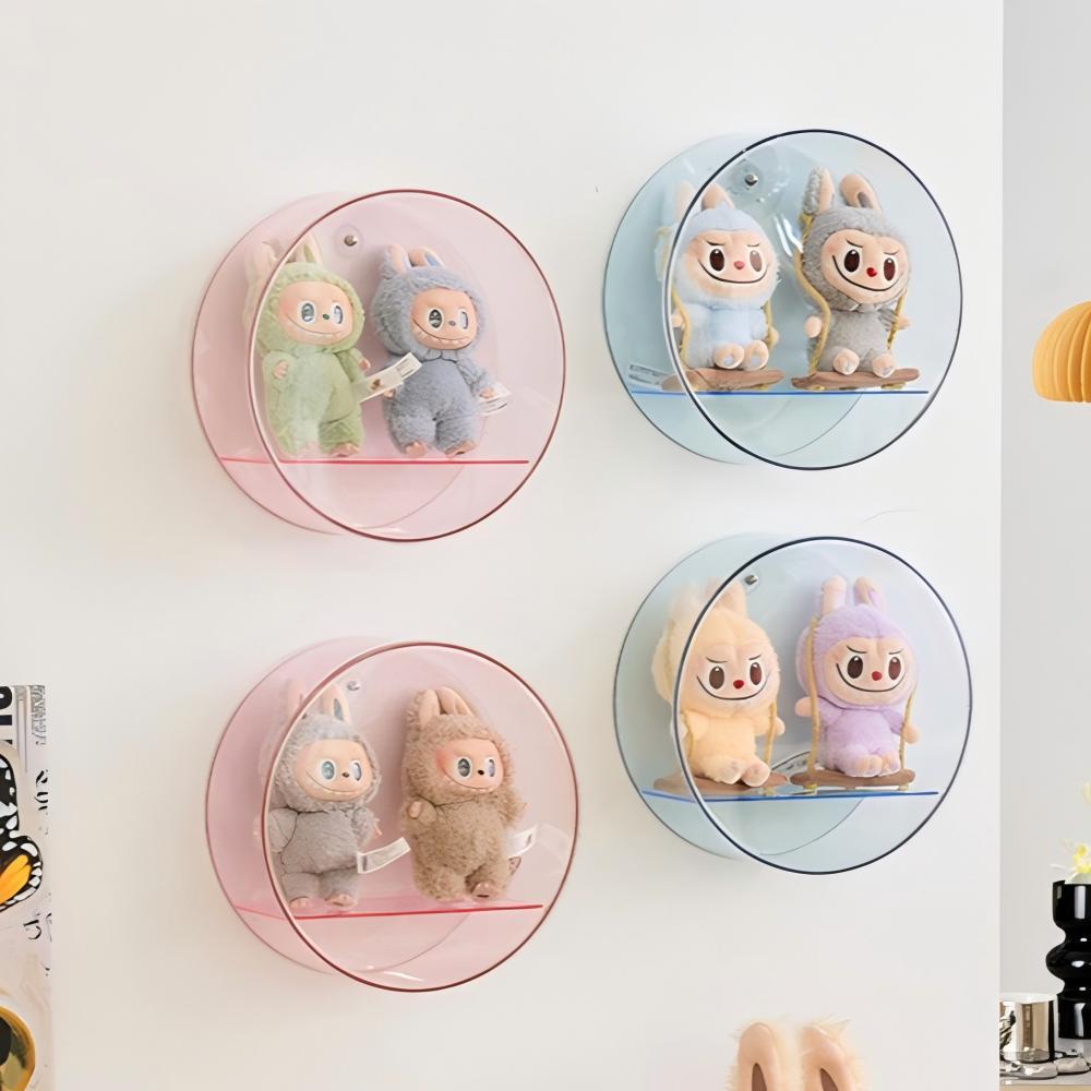 LABUBU対応 壁掛け アクリル ディスプレイケース 2体収納 高透明 工具不要 簡単設置 防塵 収納ボックス 25×25cm 3色