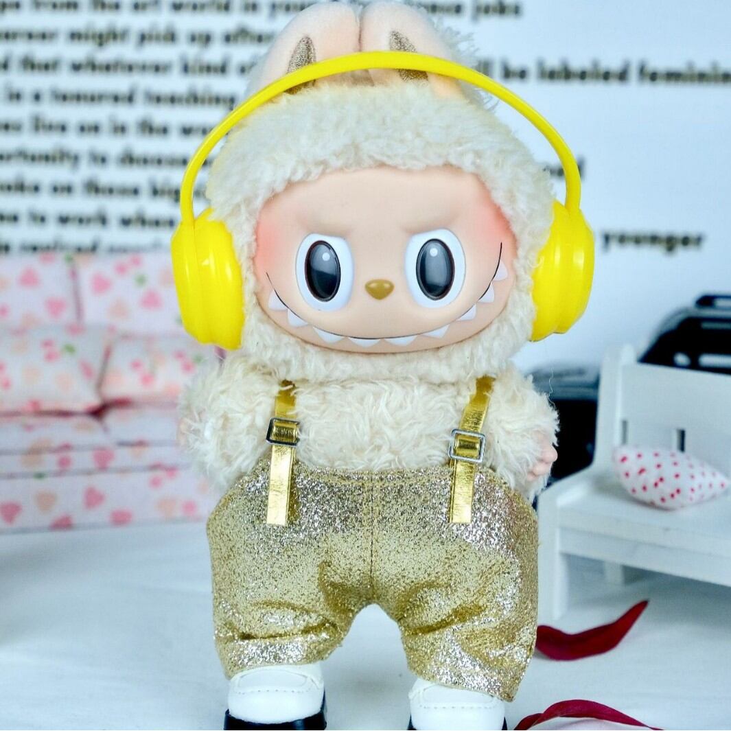 ラブブ 1-3代用 おしゃれ キラキラ サロペット+ヘッドホン+靴 Labubu ぬいぐるみ 着せ替え 服 3点セット