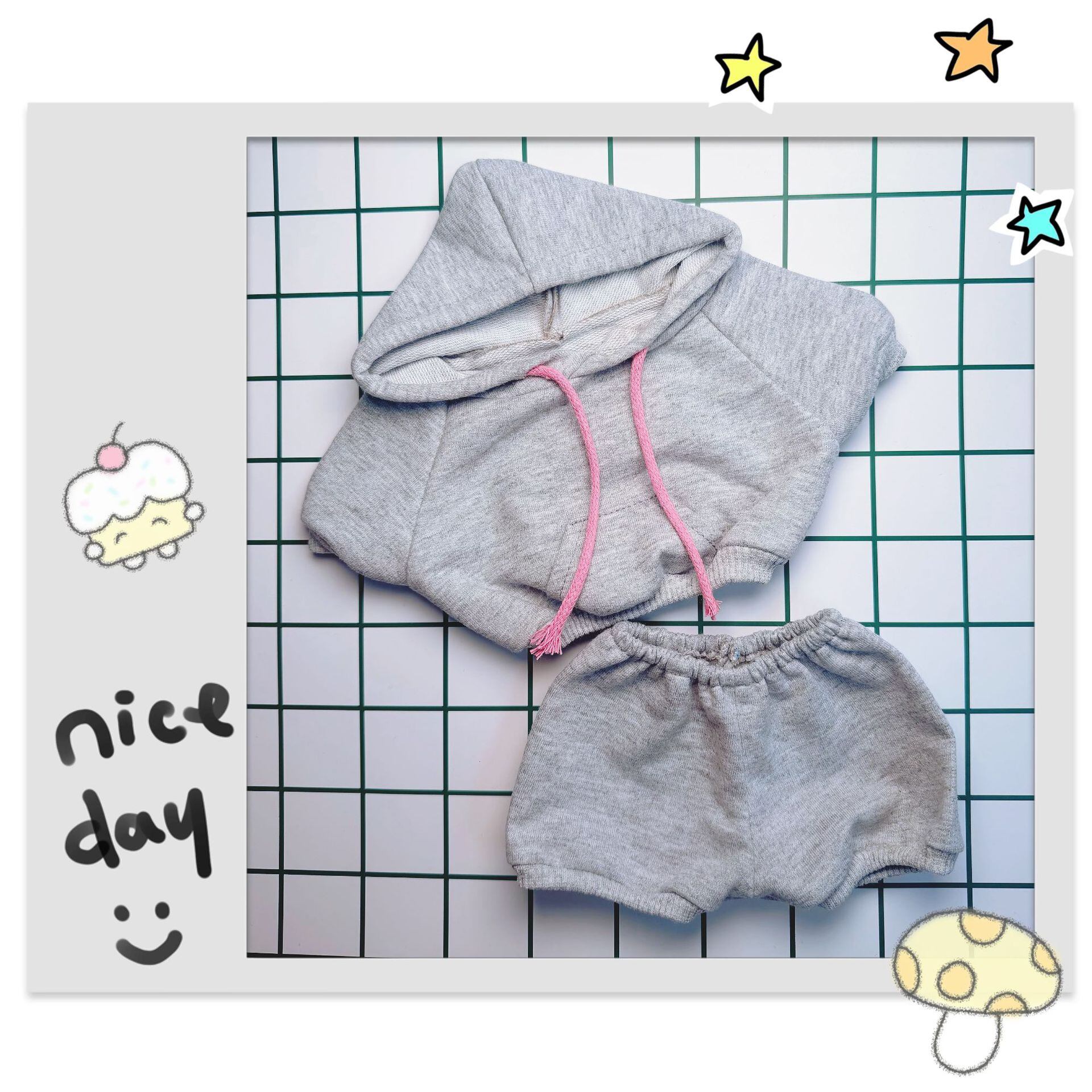 38cm Labubu用 カジュアル 無地パーカー+パンツ ラブブ ぬいぐるみ 着せ替え シンプルコーデ 2点セット 全6色