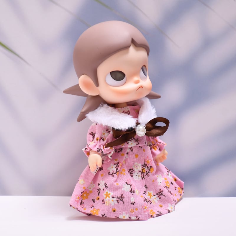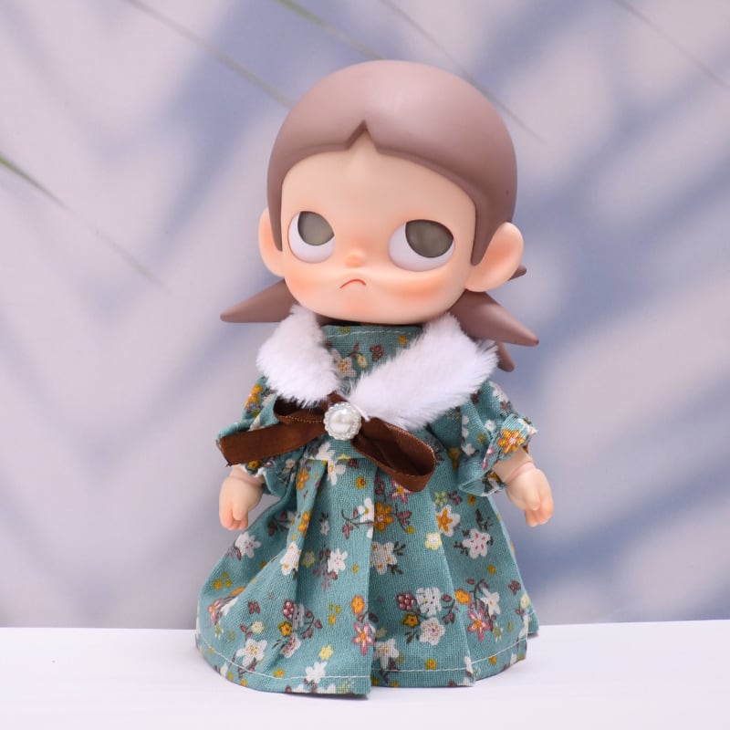 Zsiga&1/8ぬいぐるみ用 レトロ 花柄ワンピース+ふわふわ マフラー おしゃれ 着せ替え 服 2点セット 2色