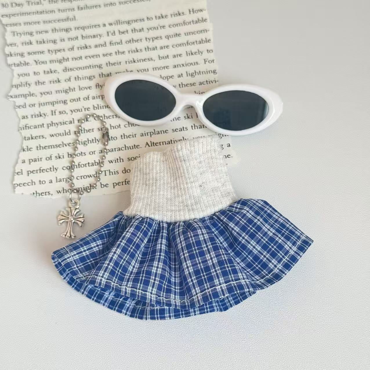 Zsiga&1/8 ぬいぐるみ用 おしゃれ カジュアル チェック柄 ワンピース+メガネ+ネックレス 夏 服 サマー 着せ替え 3点セット