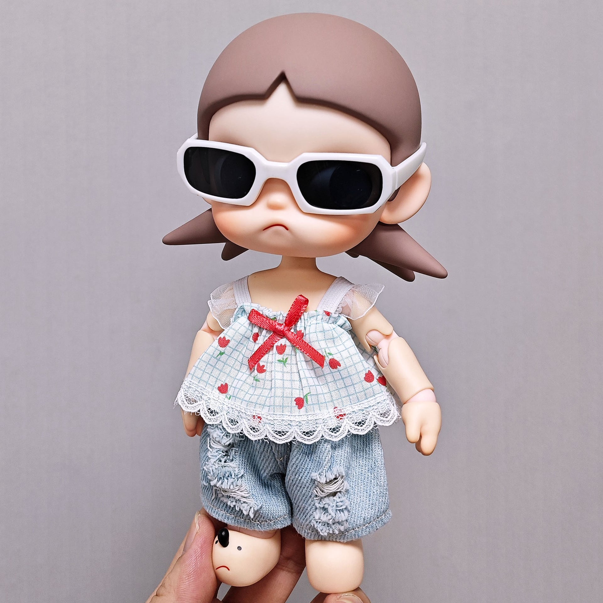 Zsiga&1/8 ぬいぐるみ用 カジュアル 夏 花柄 トップス+デニムパンツ+メガネ+ヘッドホン 服 サマー 着せ替え 4点セット
