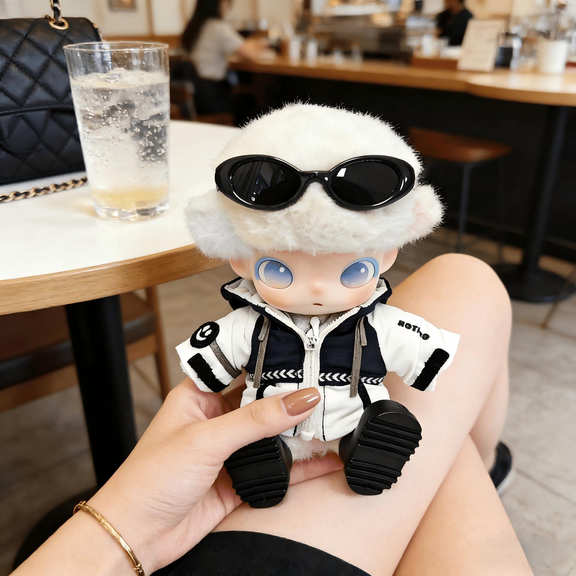 Dimoo用 ぬいぐるみ カジュアル スキー フード付きジャケット+シューズ+メガネ おしゃれ 着せ替え 服 3点セット