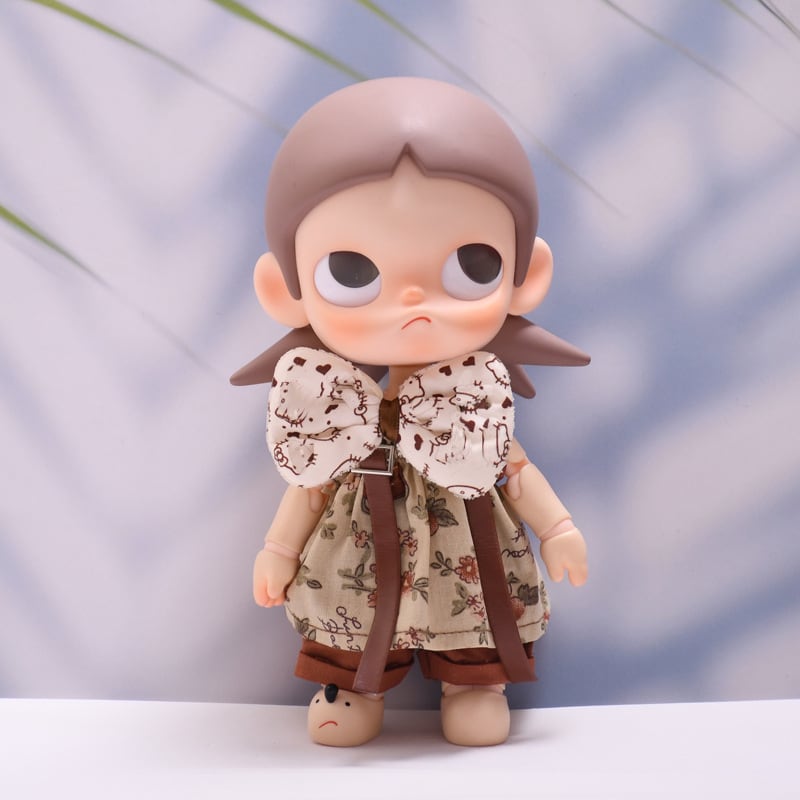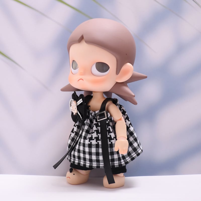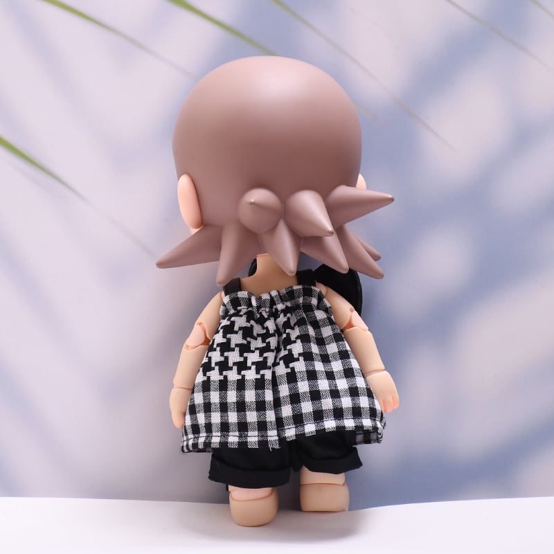 Zsiga&1/8 ぬいぐるみ用 レトロ チェック/花柄 サロペット+パンツ+ヘアアクセ おしゃれ 着せ替え 服 3点セット 2色