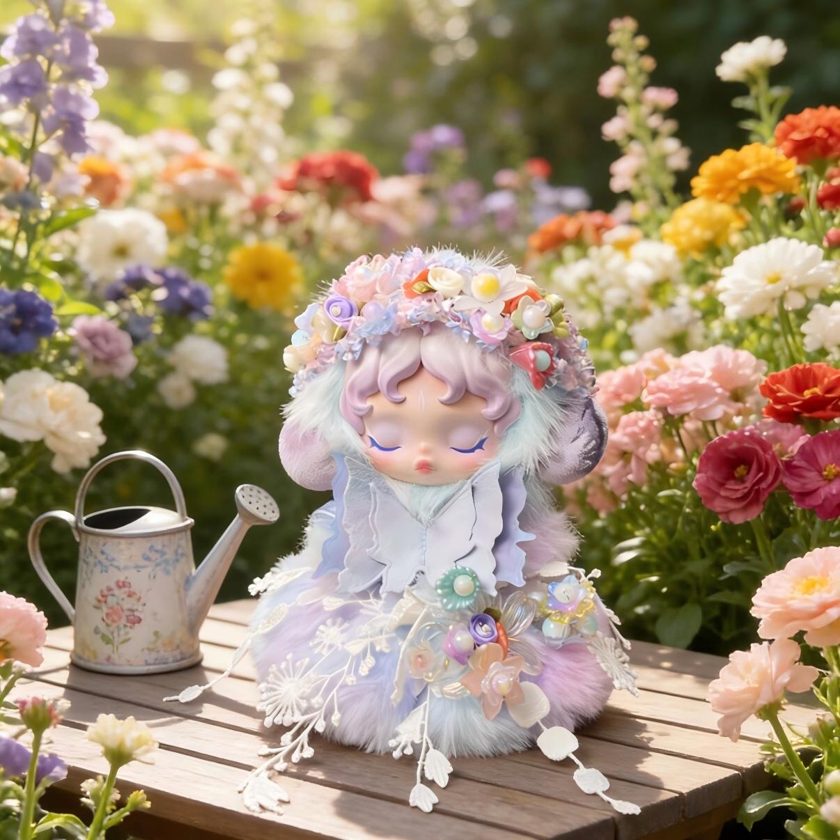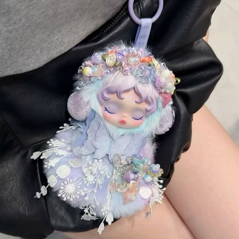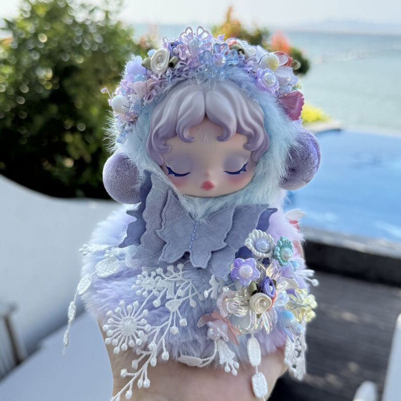 Skullpanda用 ふわふわ フラワー バタフライ ドレス+ヘアバンド パープルグラデーション スカルパンダ ぬいぐるみ 着せ替え 2点セット