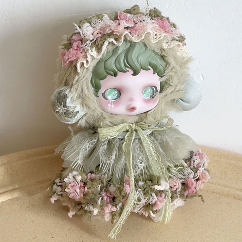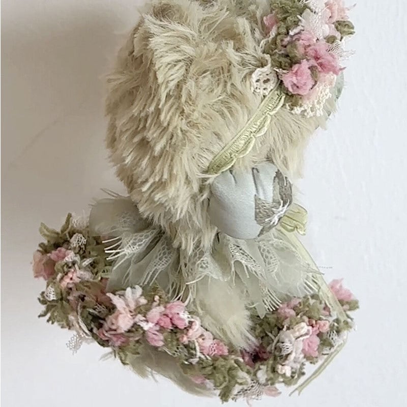 Skullpanda用 フラワーフェアリー 花柄装飾 チュールドレス+ヘアバンド スカルパンダ ぬいぐるみ 着せ替え 2点セット グリーン