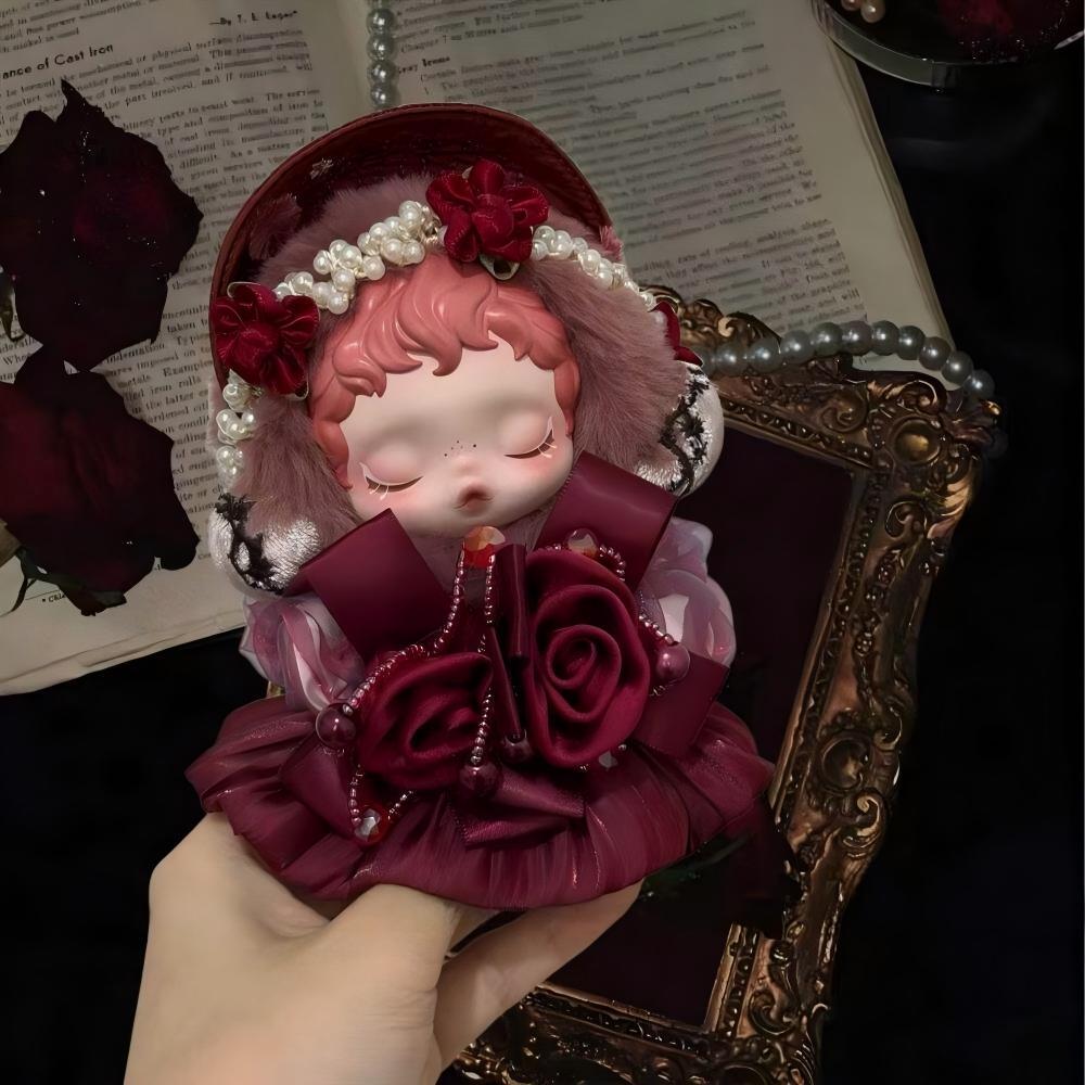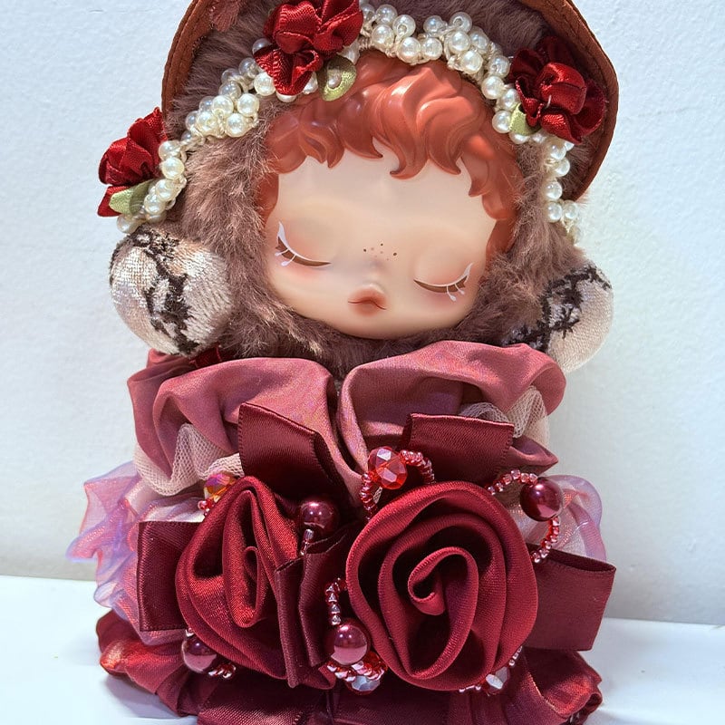 Skullpanda用 エレガント チュールドレス+ローズネックレス+パールヘアアクセ スカルパンダ ぬいぐるみ 着せ替え 3点セット ワインレッド