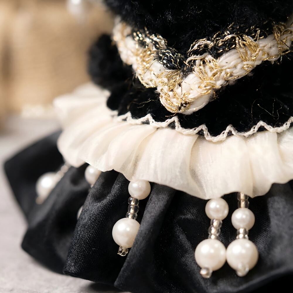 スカルパンダ対応 パール装飾ワンピース+フラワーヘアバンド SKULLPANDA用 ぬいぐるみ 着せ替え服 2点セット ブラック