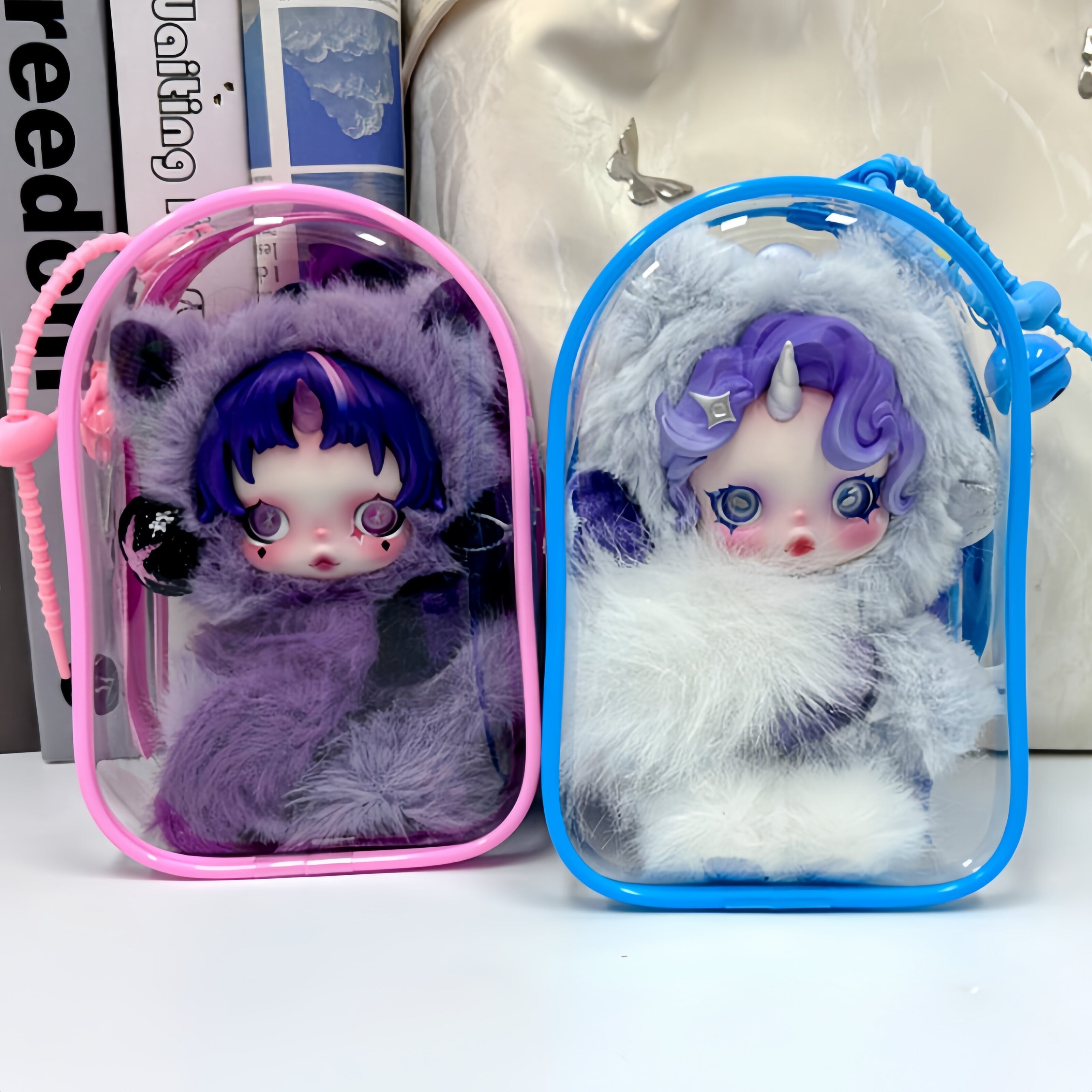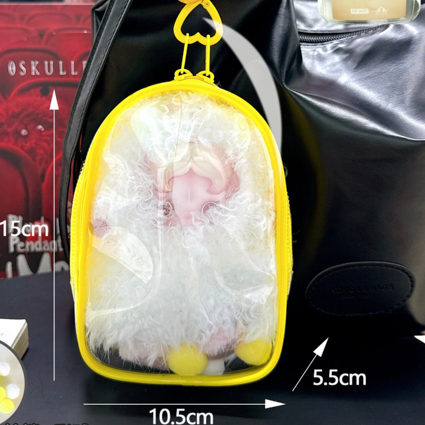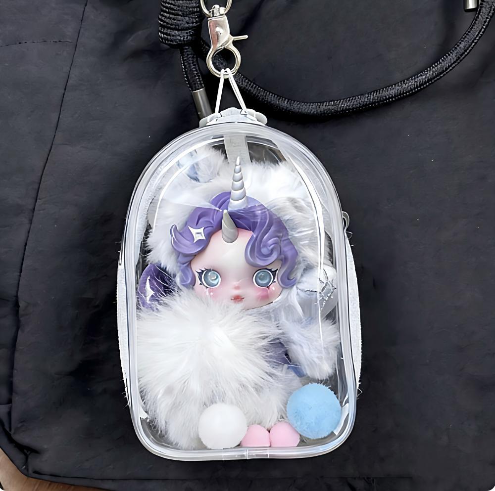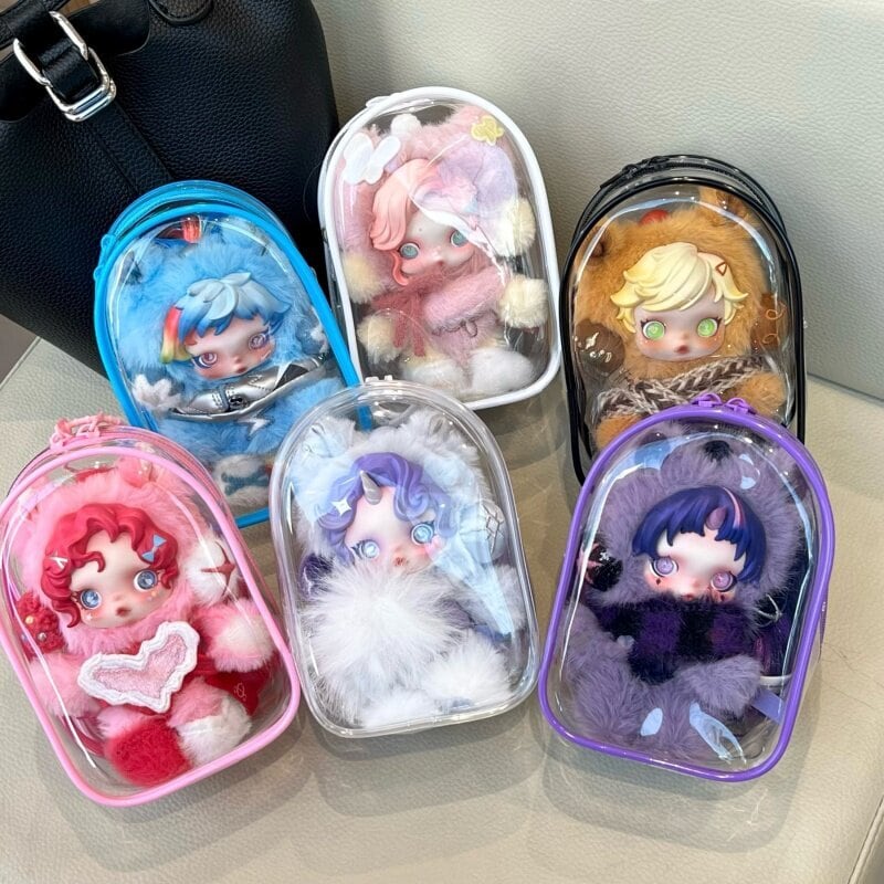 Skullpanda対応 透明 PVC 収納ポーチ 15cm ぬいぐるみ用 防水防塵 保護ケース デコボール&キーホルダー付き 全7色