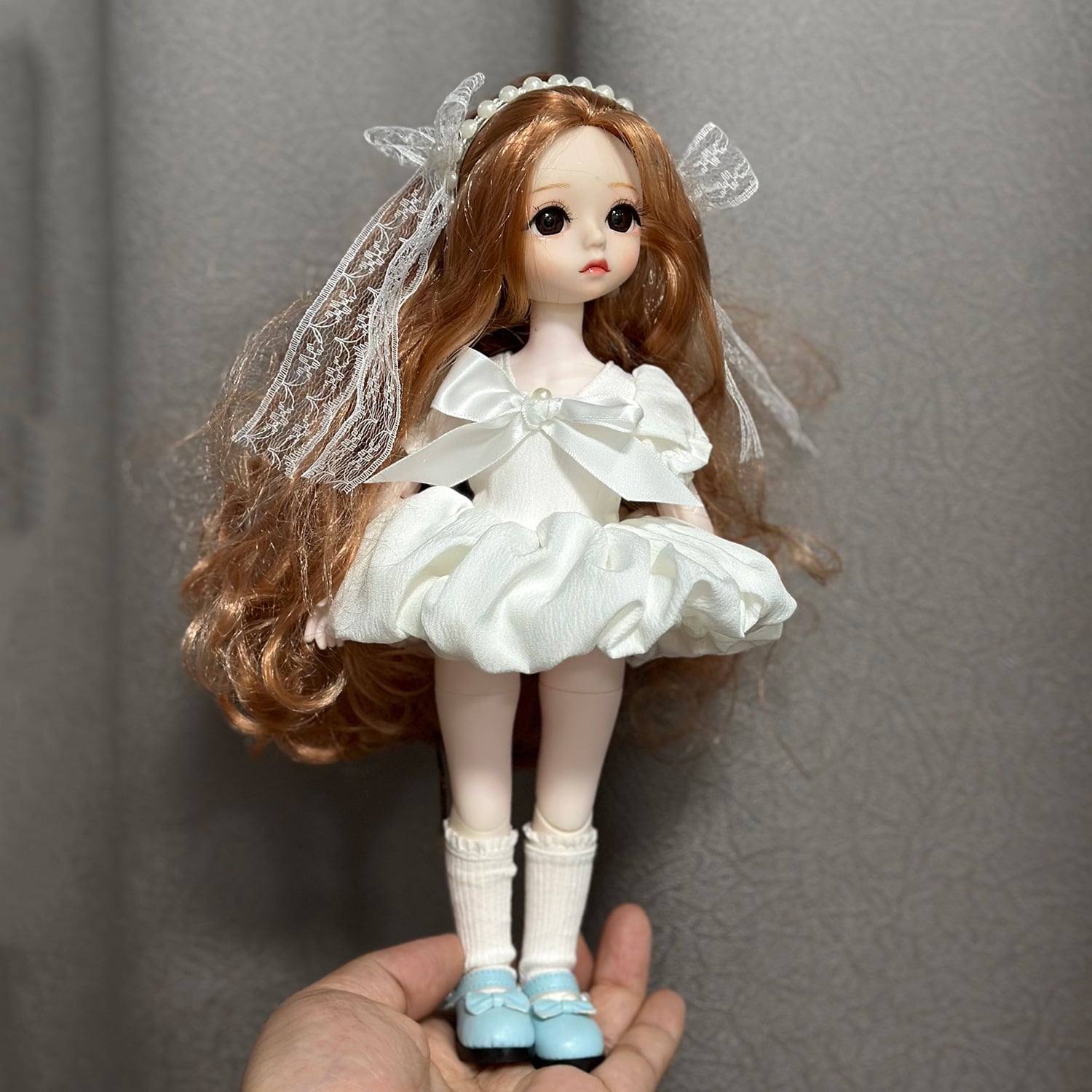 1/6 BJDドール対応 エレガント ホワイト/花柄 つぼみワンピース+レースヘッドドレス ぬいぐるみ せ替え服 3点セット