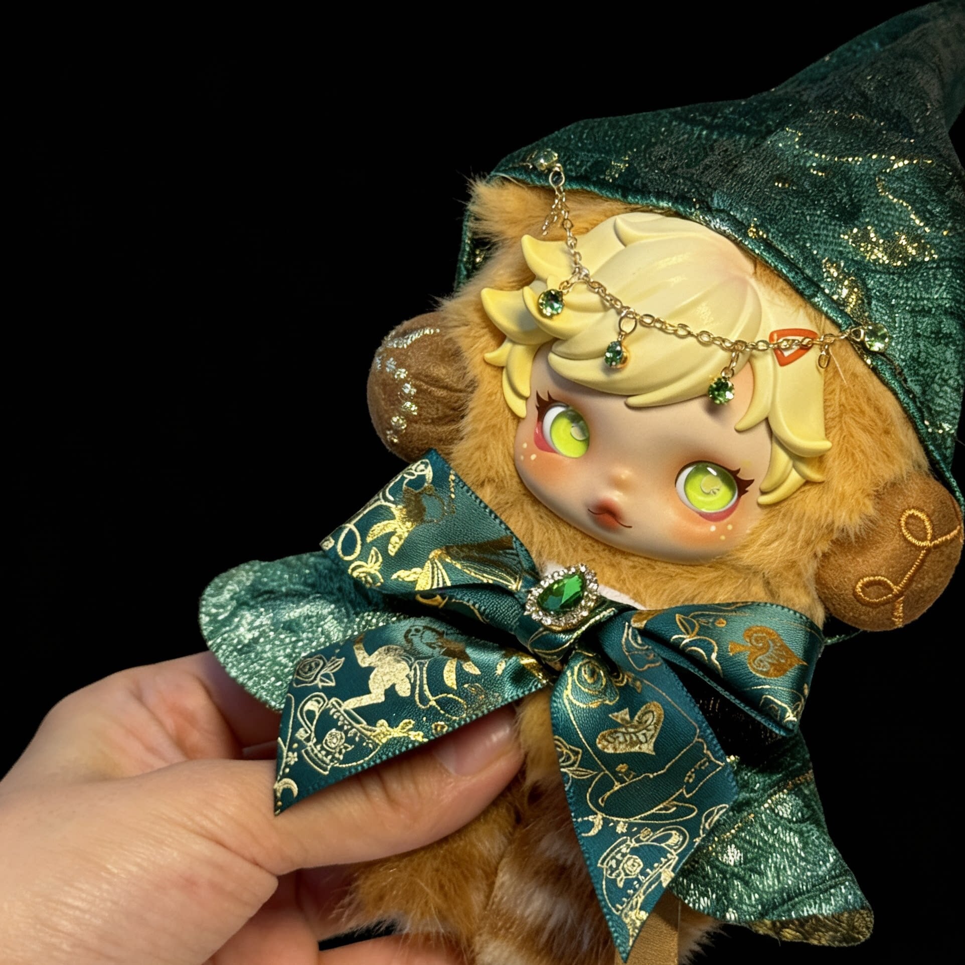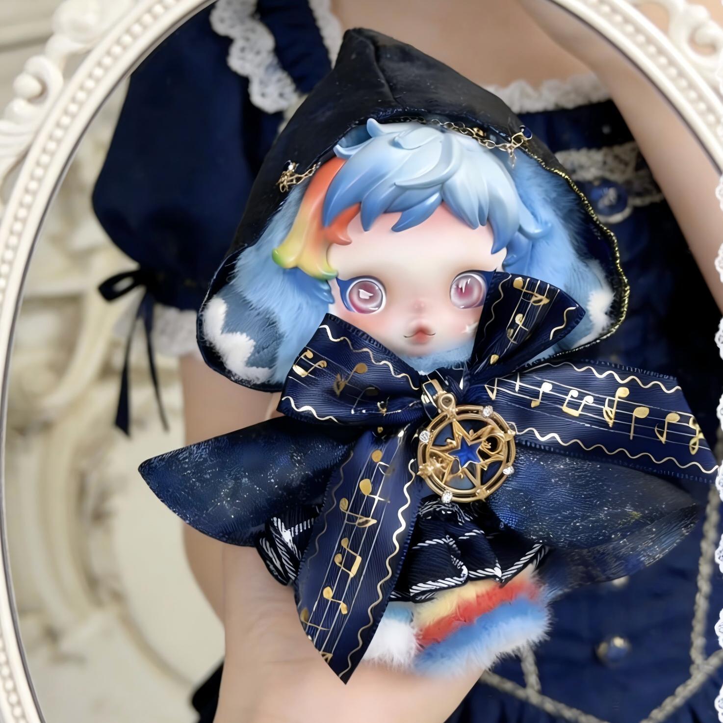 スカルパンダ ぬいぐるみ用 魔法使い フード付きマント+スカート SKULLPANDA対応 リボンラメ装飾 ケープ 着せ替え服 2点セット 3色