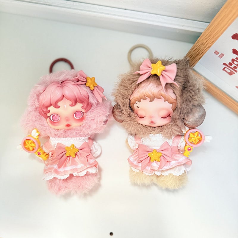 SKULLPANDA用 マジカルガール 星柄リボン ワンピース+ヘアアクセ+杖 スカルパンダ ぬいぐるみ 着せ替え 3点セット ピンク