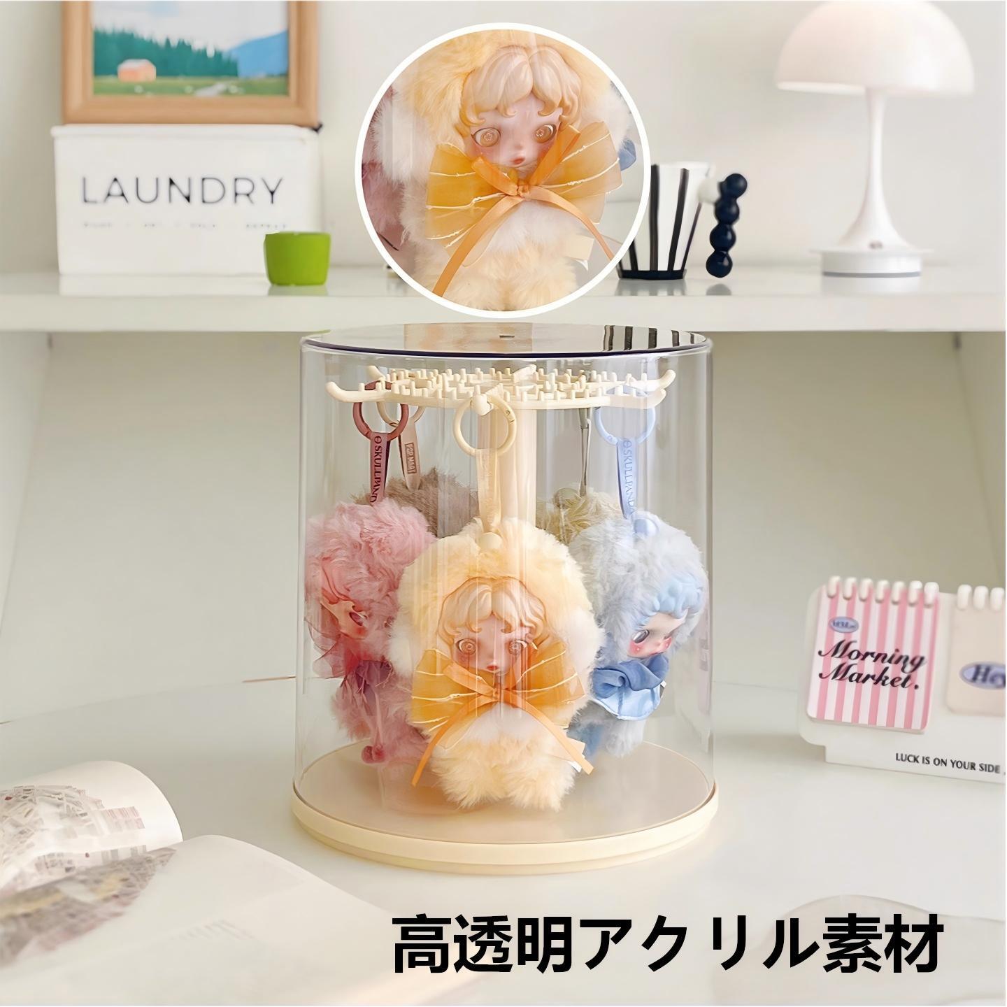 Skullpanda用 アクリル ディスプレイケース 6フック 360度回転 高透明 防水 防塵 収納ボックス 25.7×23.1cm イエロー/ホワイト