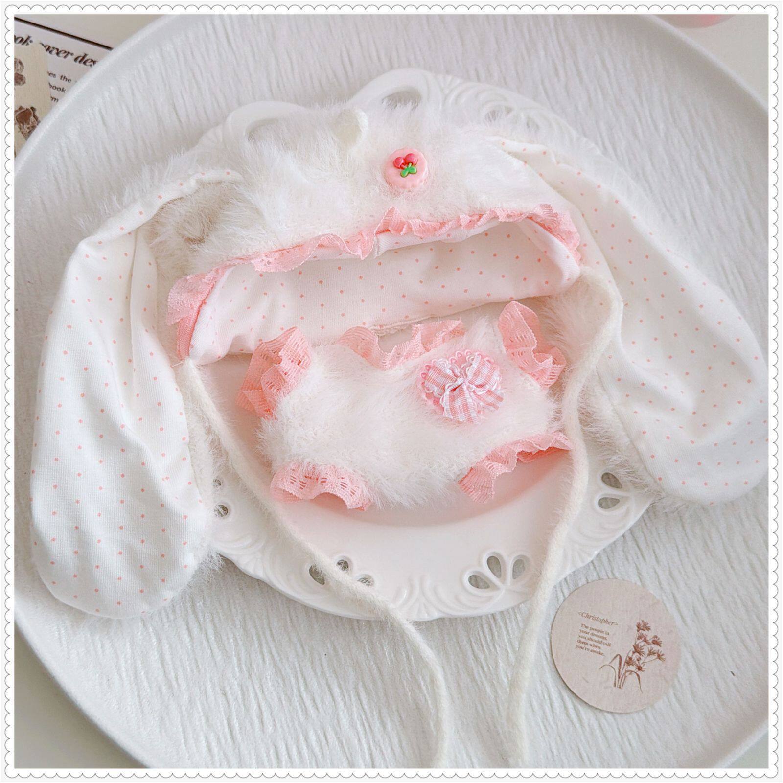 スカルパンダ用 可愛い もこもこ ロンパース+うさ耳 帽子 Skullpandaぬいぐるみ オールインワン アニマル 着せ替え 2点セット