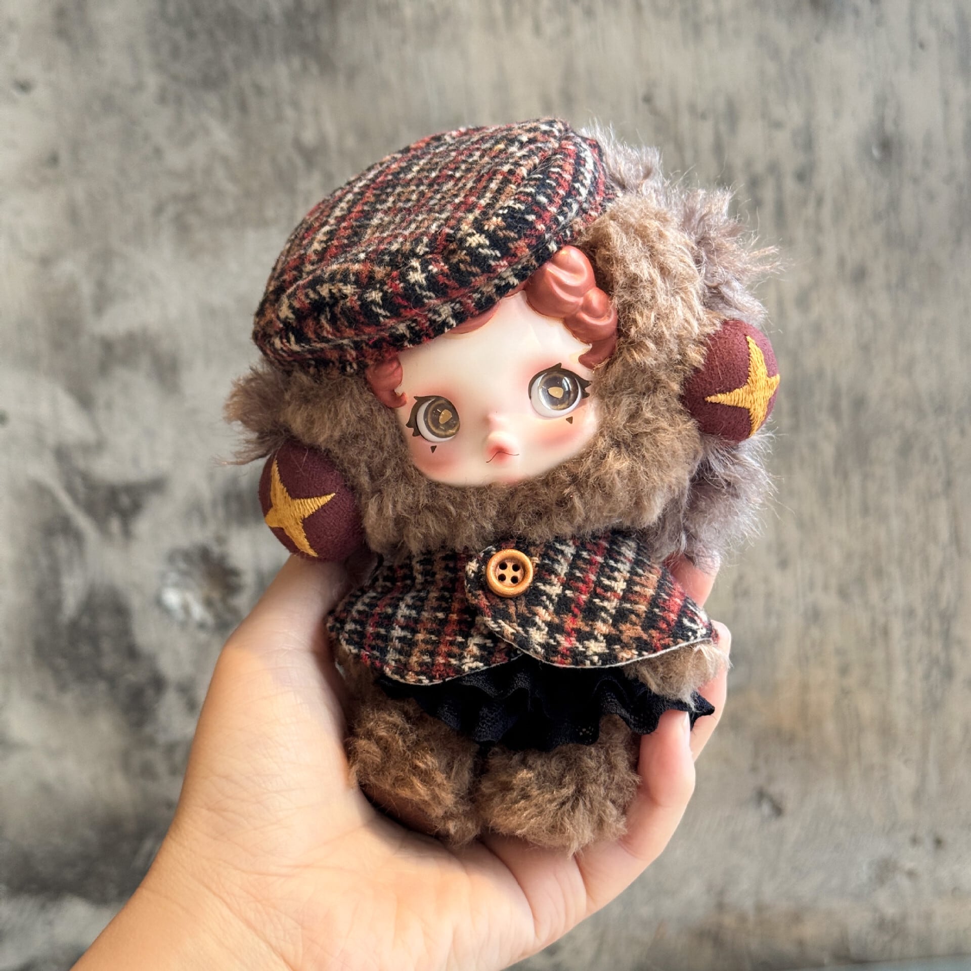 Skullpanda用 おしゃれ レトロ チェック柄 マント ケープ+ベレー帽 スカルパンダ ぬいぐるみ 服 着せ替え 2点セット