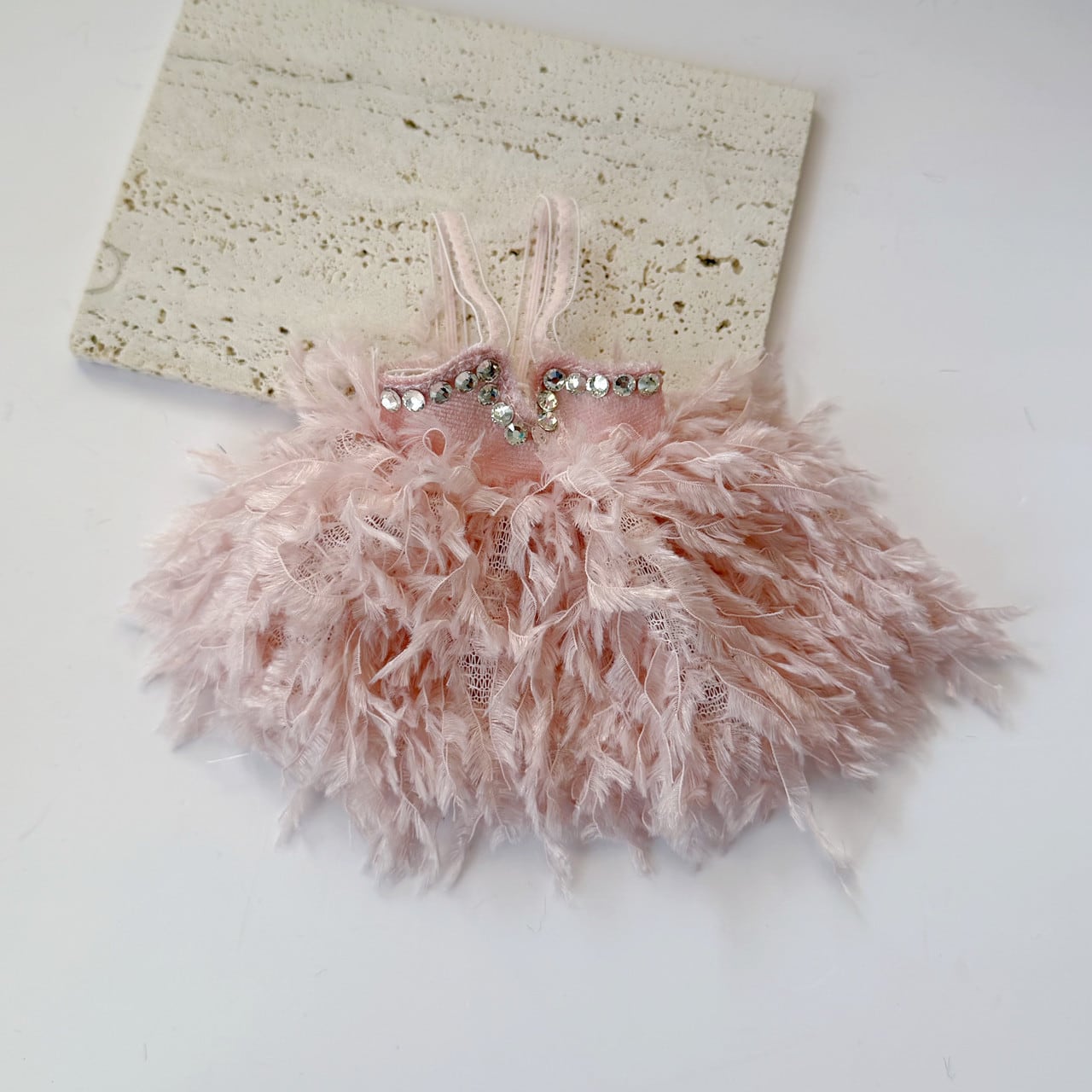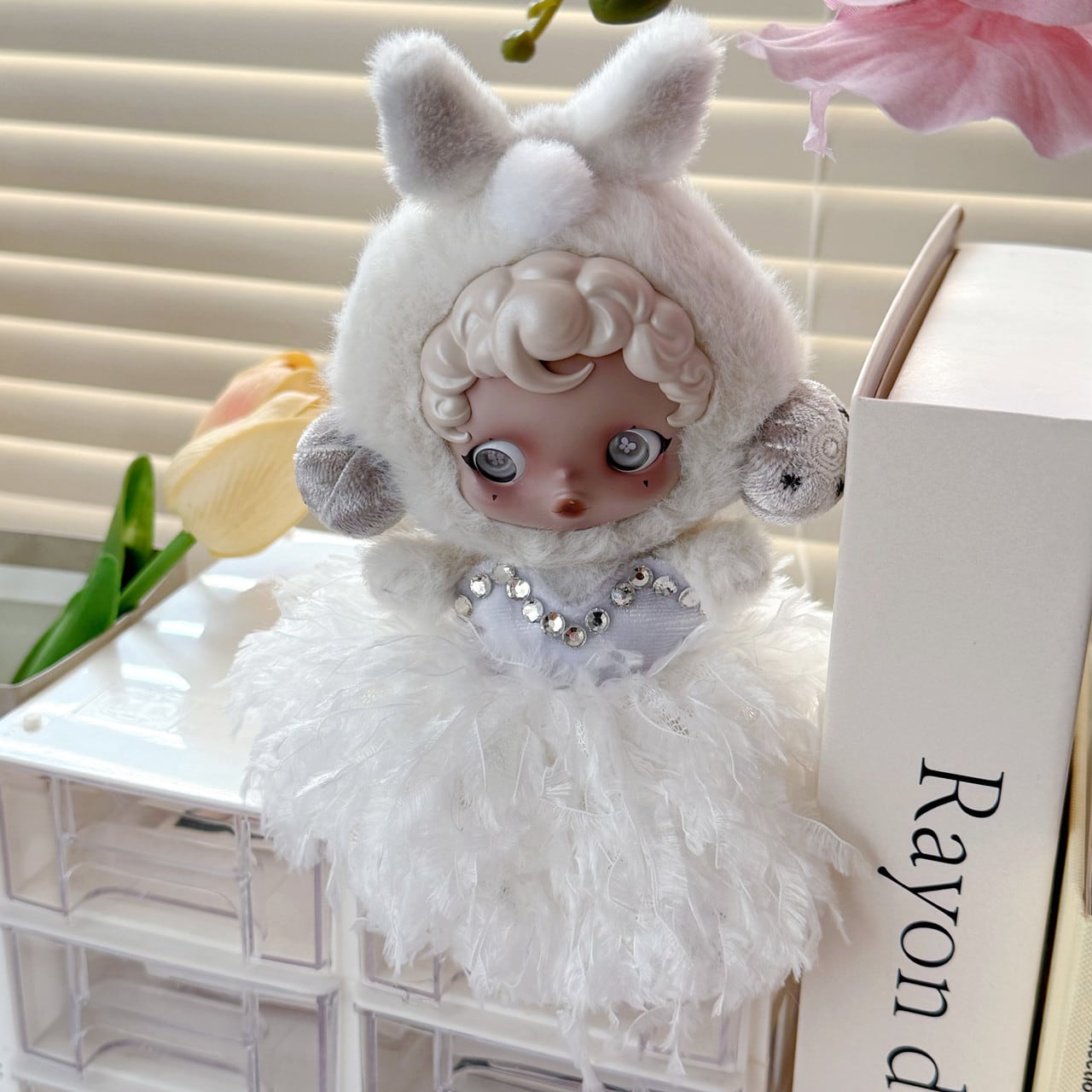 Labubu 1-3代/Dimoo/Skullpanda用 おしゃれ フェザースカート エレガント ラインストーン装飾 着せ替え ワンピース 3色
