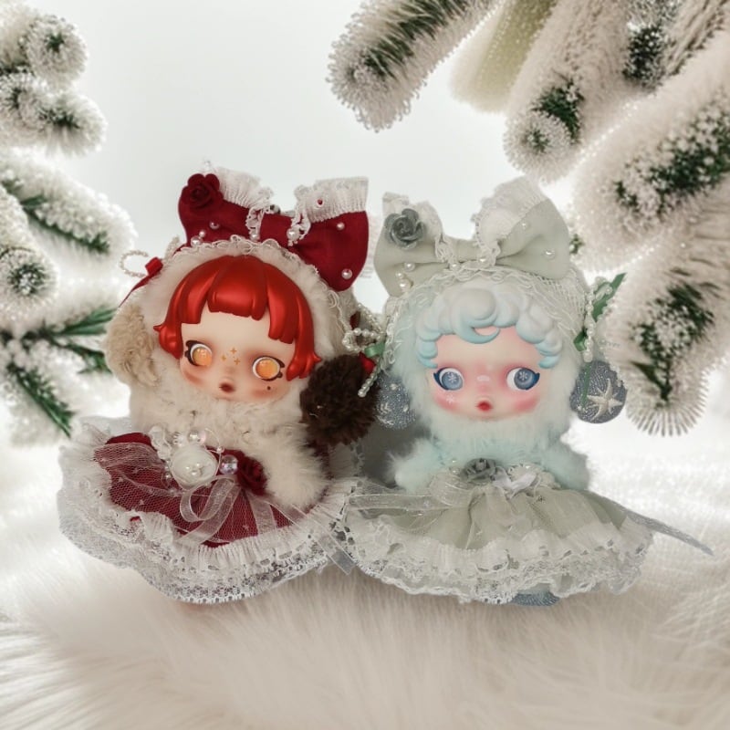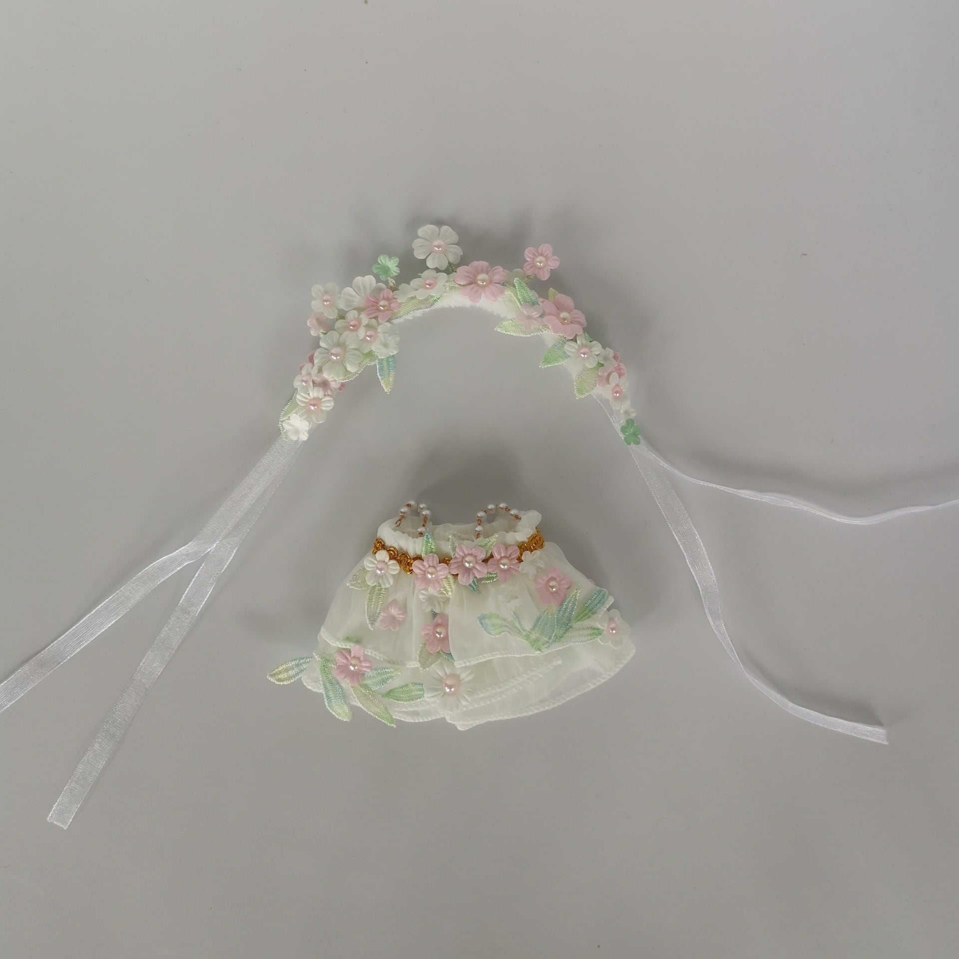 Skullpanda用 プリンセス チュールドレス フラワー/リボン装飾 ワンピース+ヘアアクセ スカルパンダ ぬいぐるみ 着せ替え 2点セット