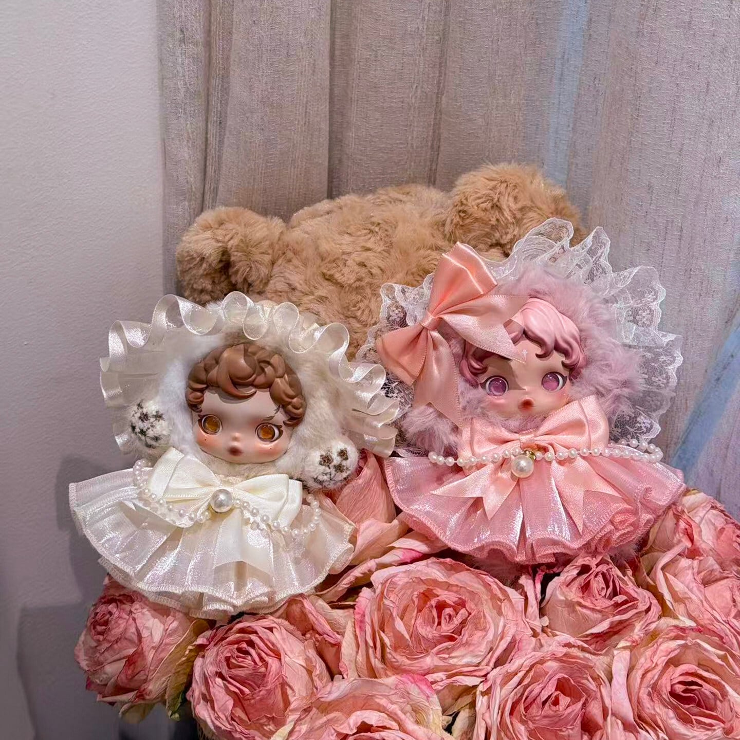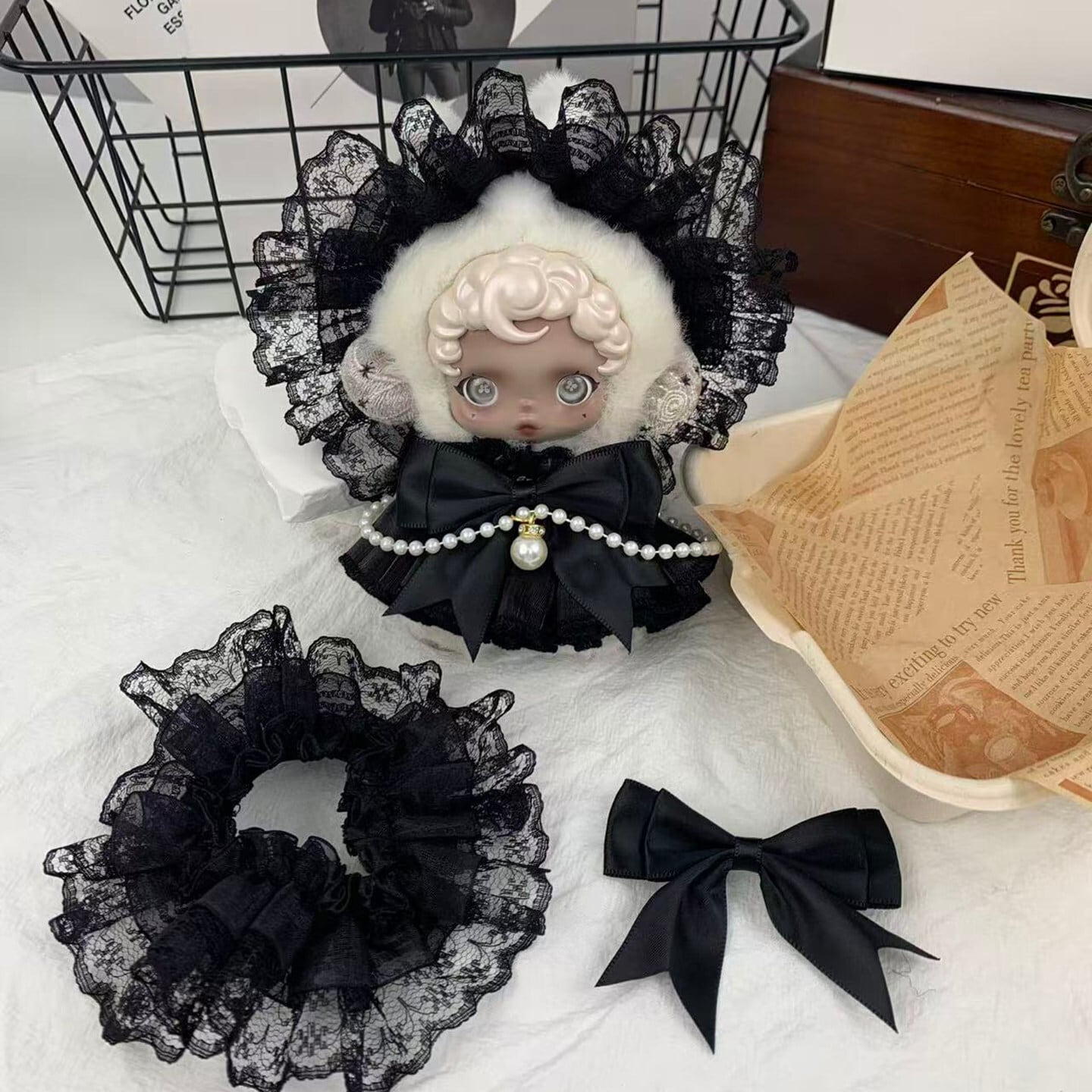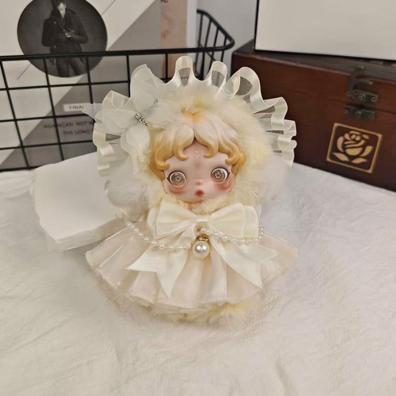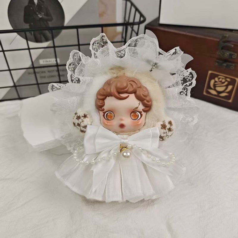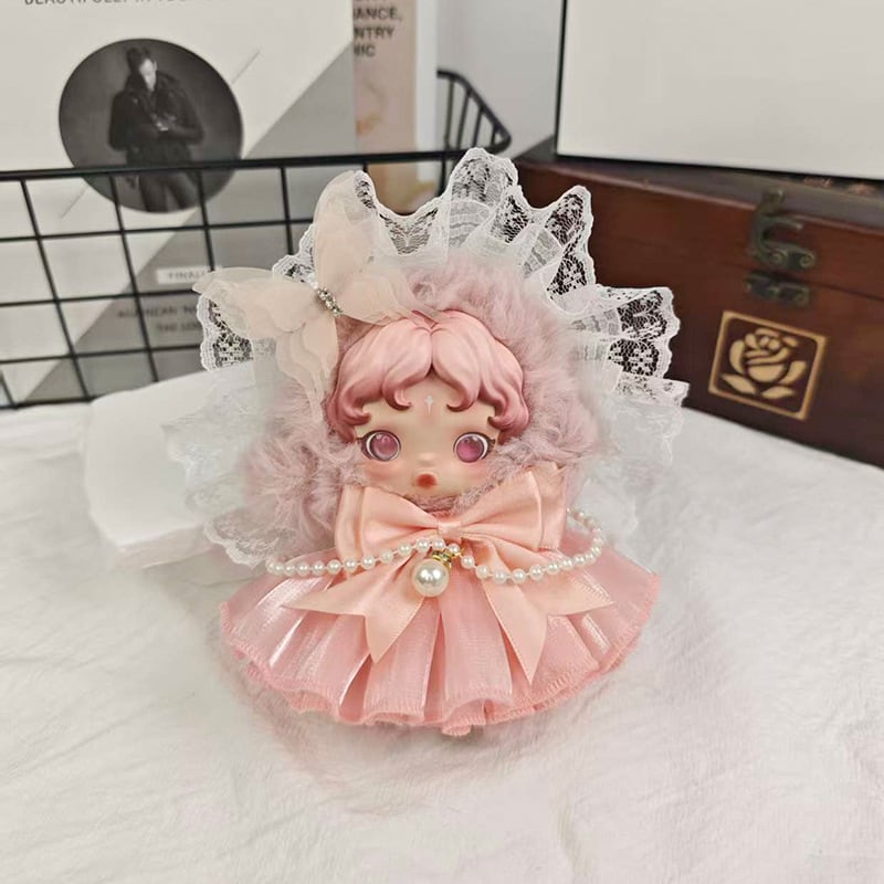 Skullpanda用 プリンセス パールワンピース+レース ヘアバンド+リボン装飾 スカルパンダ ぬいぐるみ エレガント 着せ替え 3点セット 4色