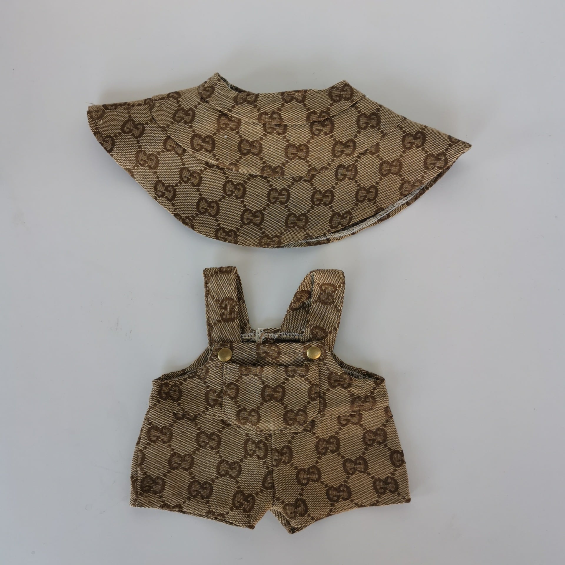 38cm/58cm Labubu用 カジュアル プリント サロペット+帽子 ラブブ ぬいぐるみ おしゃれ 服 着せ替え 2点セット