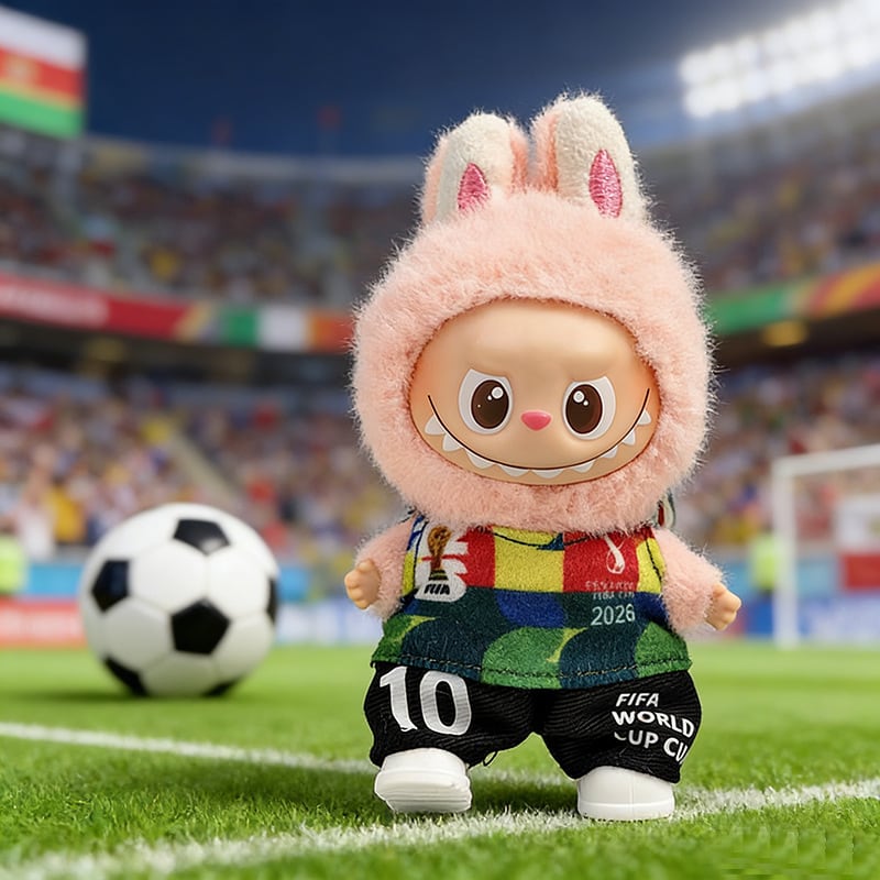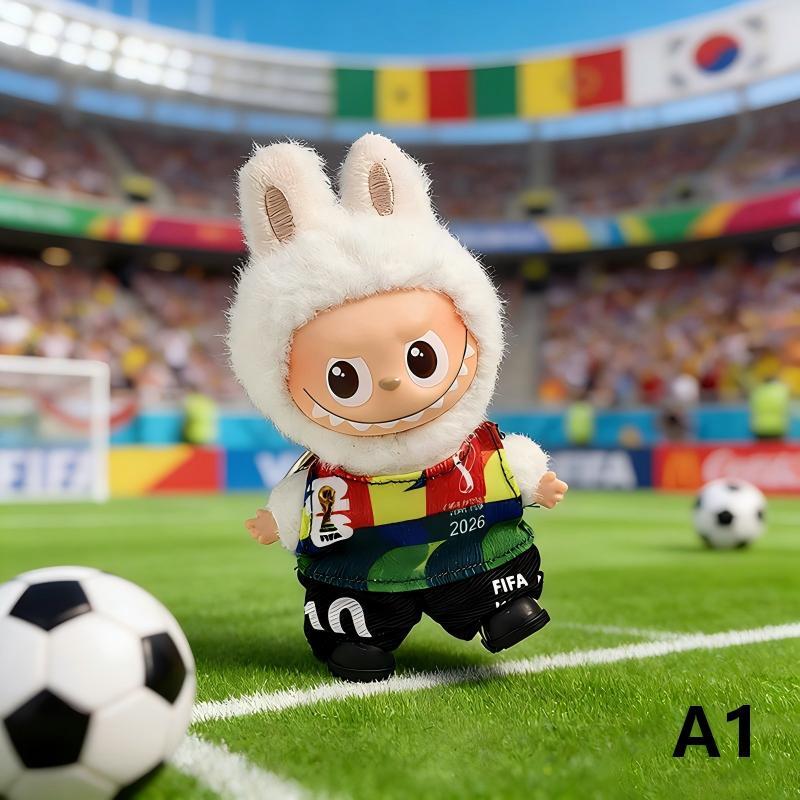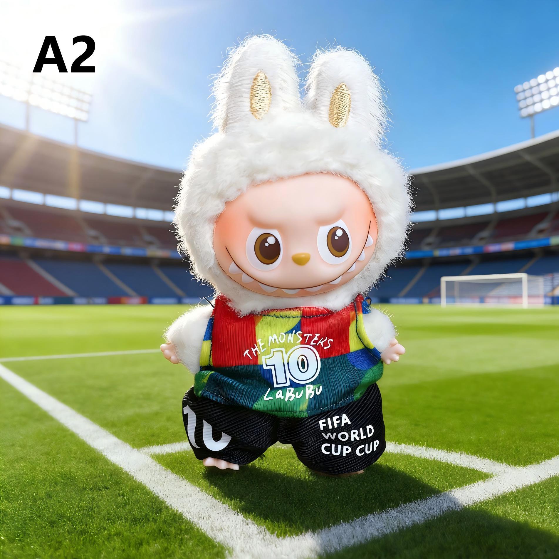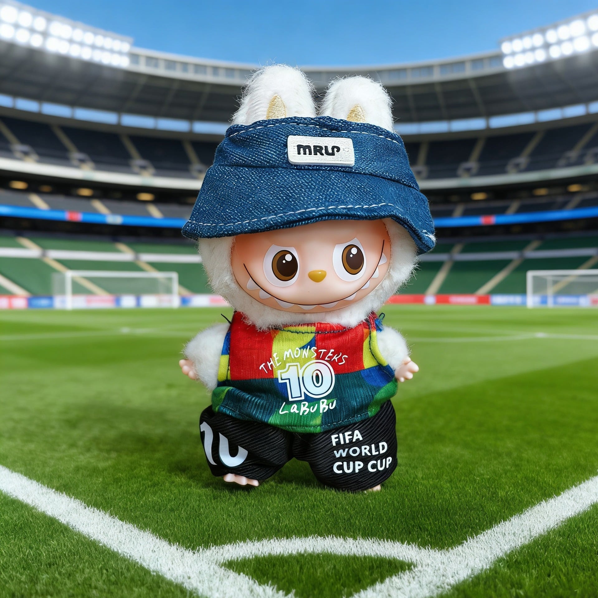 Labubu 4代用 カジュアル 2026 サッカー ユニフォーム トップス+パンツ+帽子 ラブブ ぬいぐるみ 服 着せ替え 3点セット