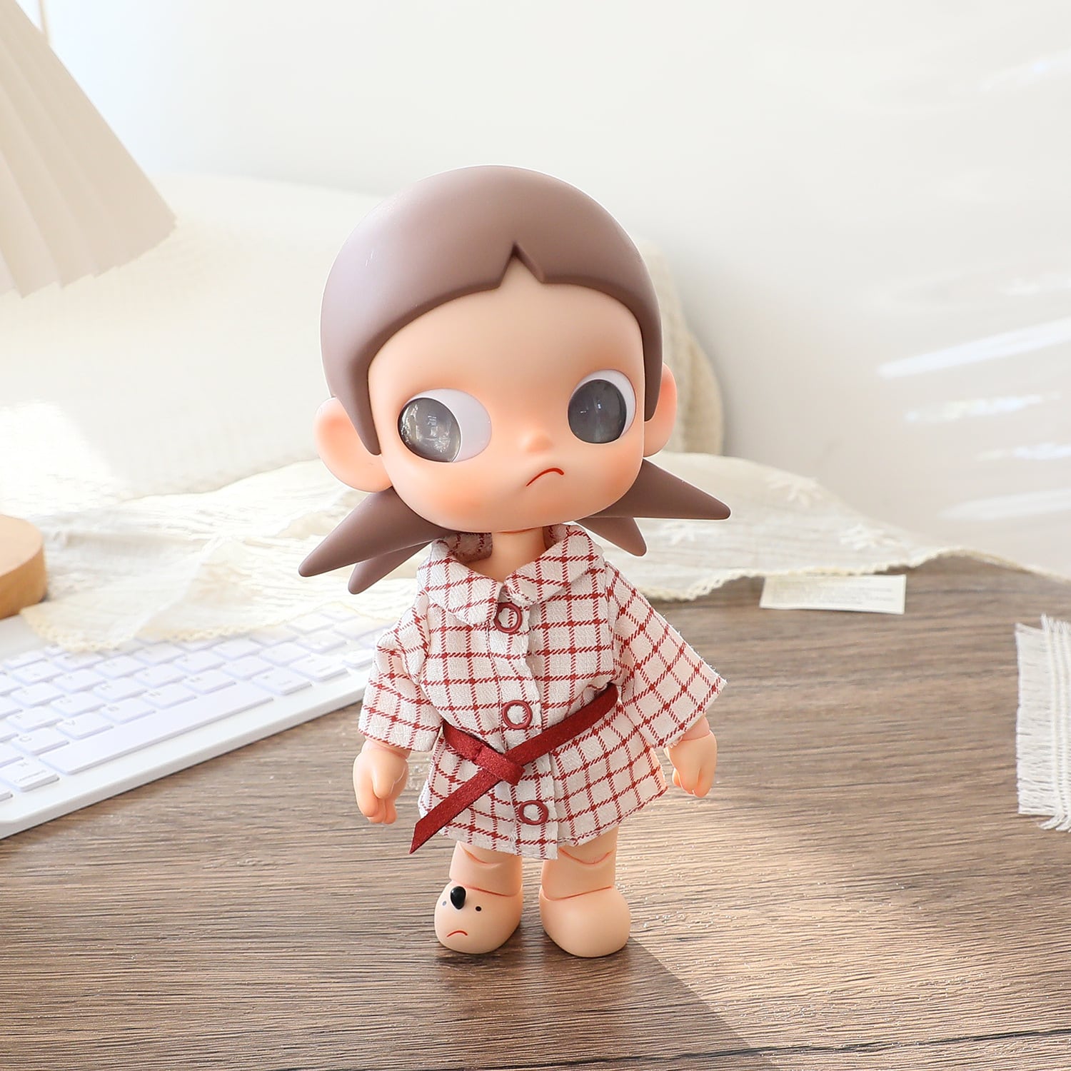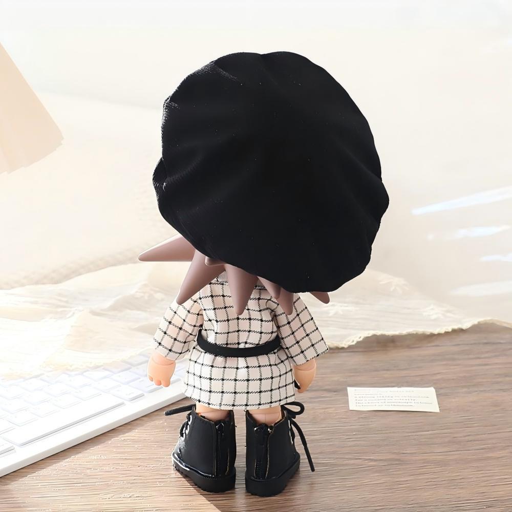 Zsiga&1/8人形用 おしゃれ チェック ロングシャツ+ベルト+ベレー帽+靴 ぬいぐるみ 服 着せ替え4点セット 3色