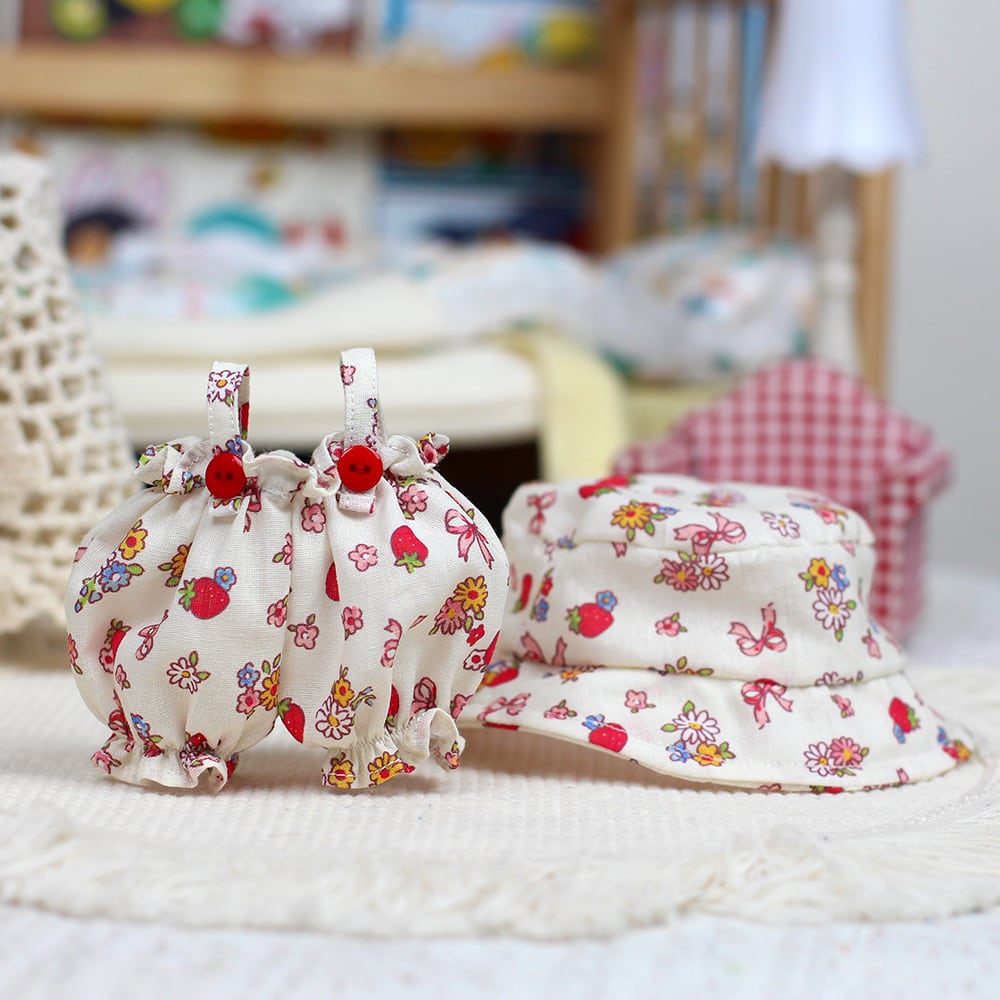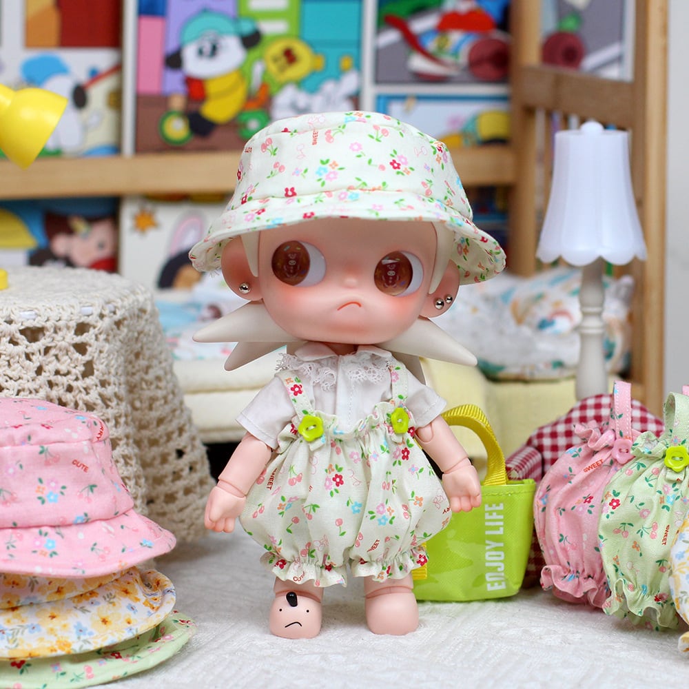 Zsiga&1/8ドール用 春夏 花柄サロペット+帽子 ぬいぐるみ 着せ替え衣装 2点セット