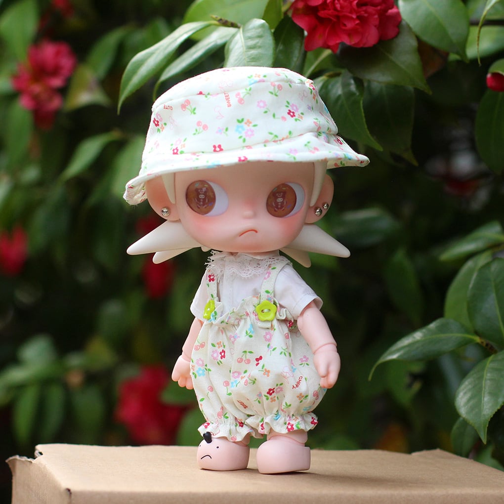 花柄とサロペットの組み合わせが、ドールに愛らしい存在感を与えます。