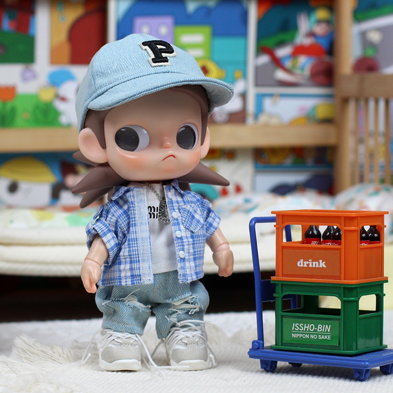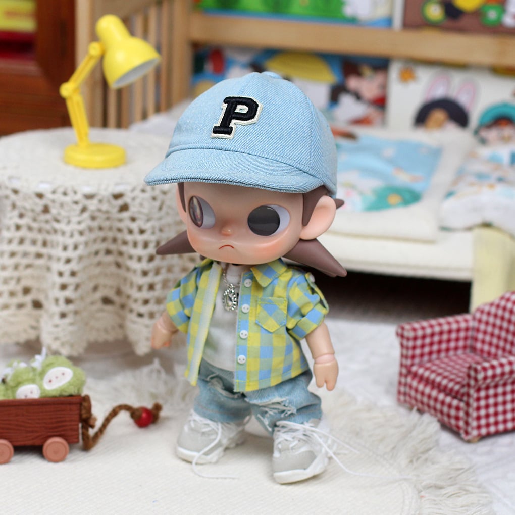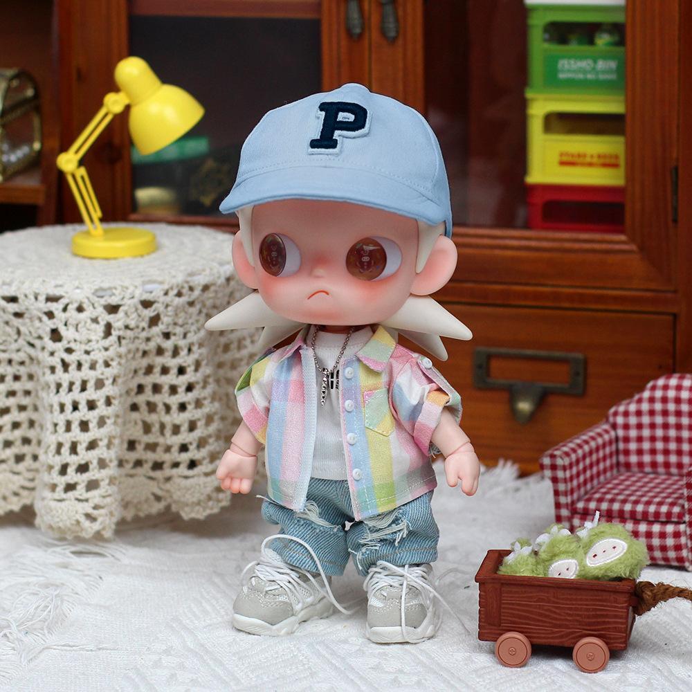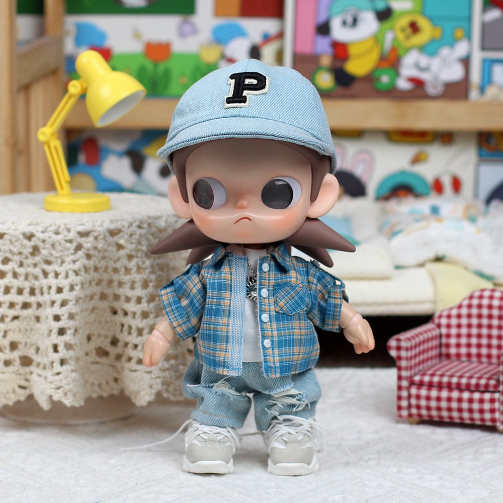 Zsiga&1/8ドール用 夏 チェックシャツ+デニムパンツ+キャップ ぬいぐるみ カジュアル 着せ替え衣装 3点セット 全4色