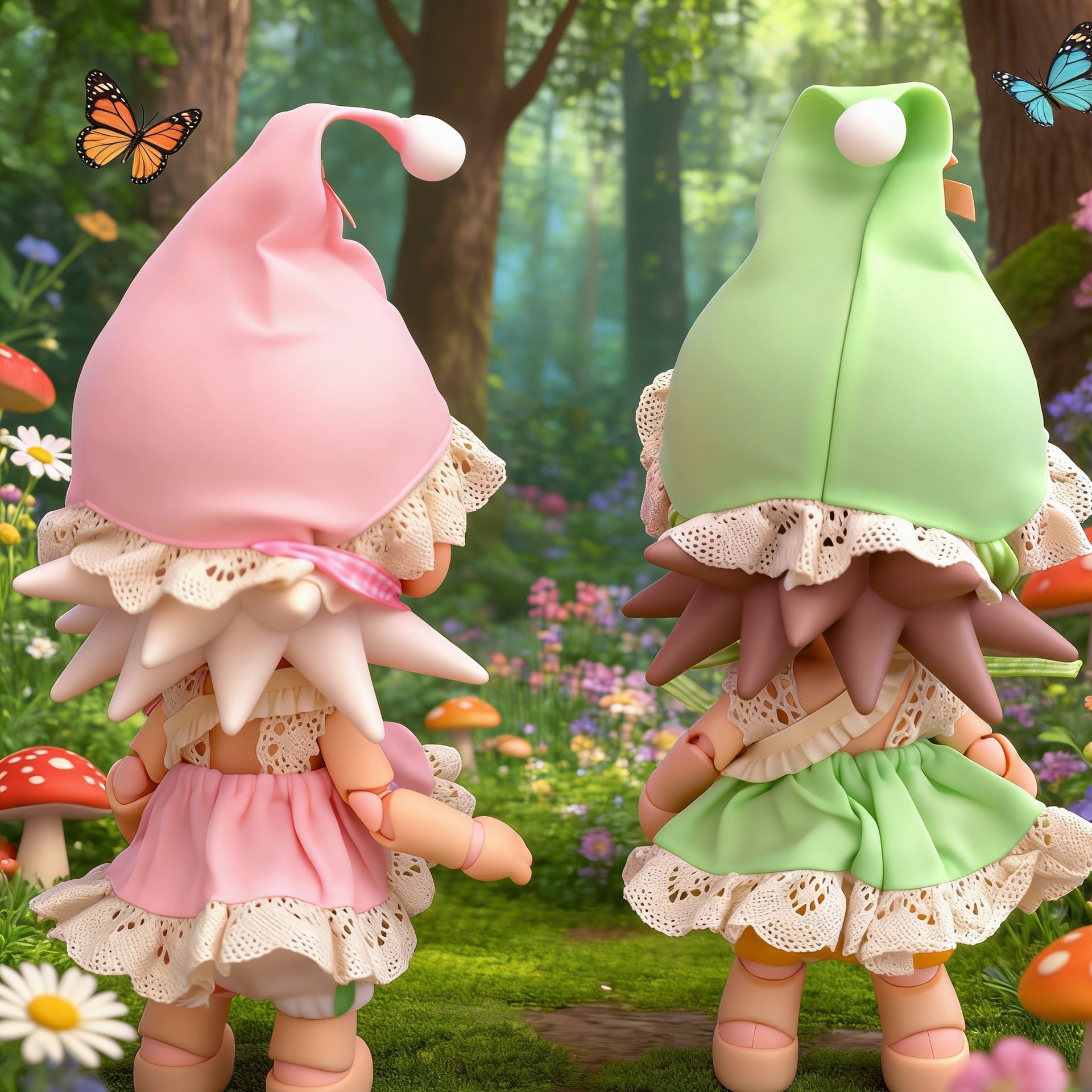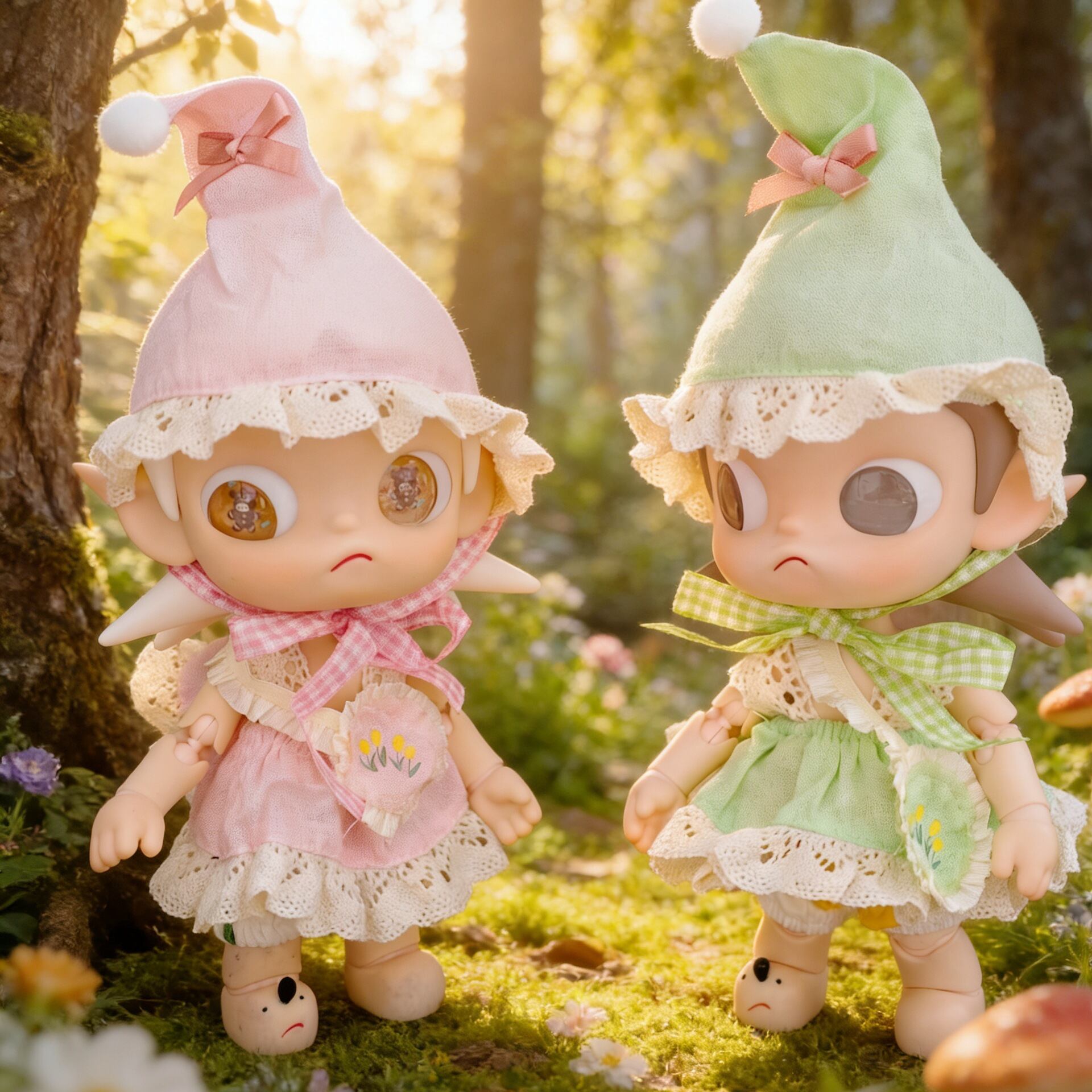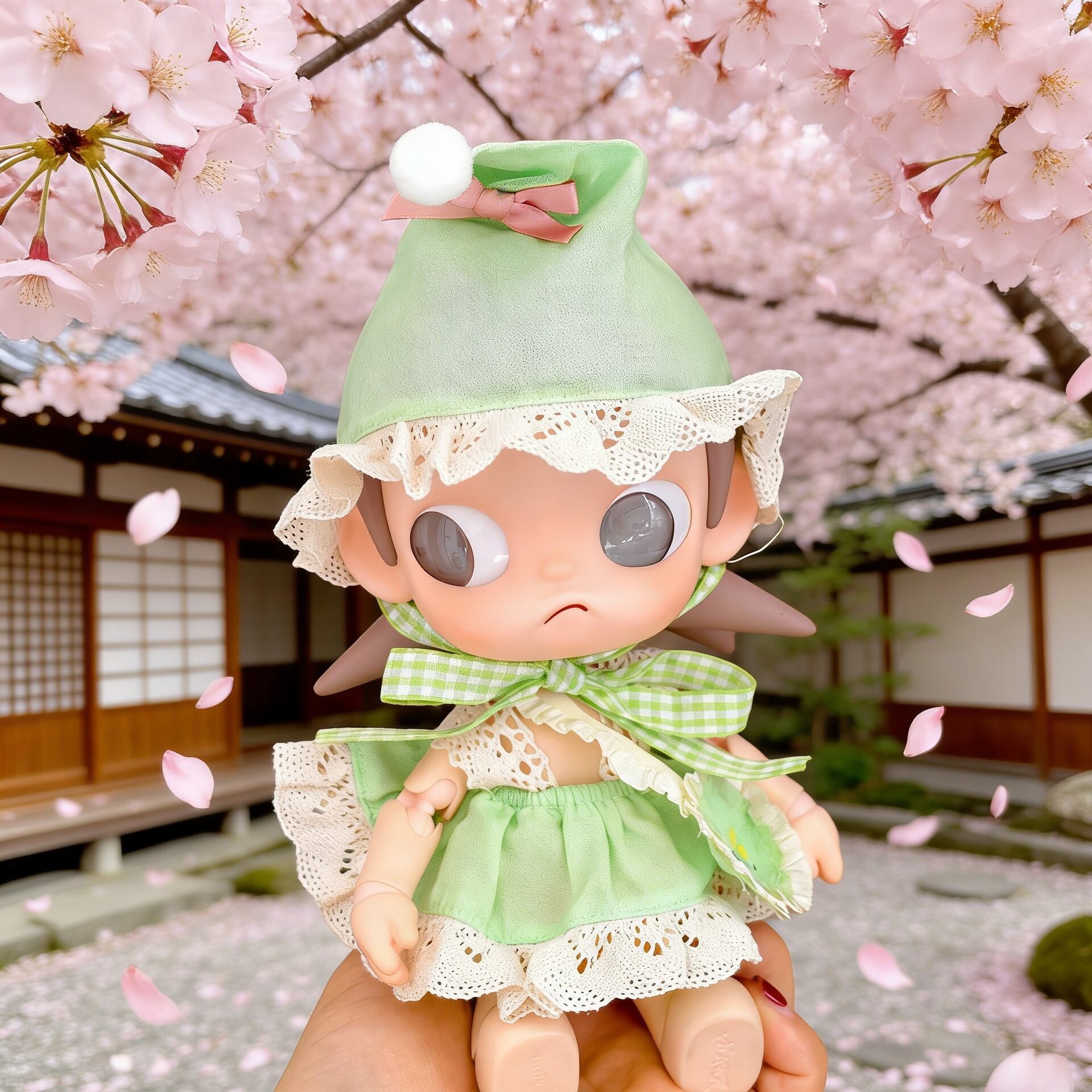 Zsiga&1/8ドール用 精霊 トップス+パンツ+帽子+バッグ ぬいぐるみ 着せ替え衣装 カジュアル 4点セット ピンク/グリーン