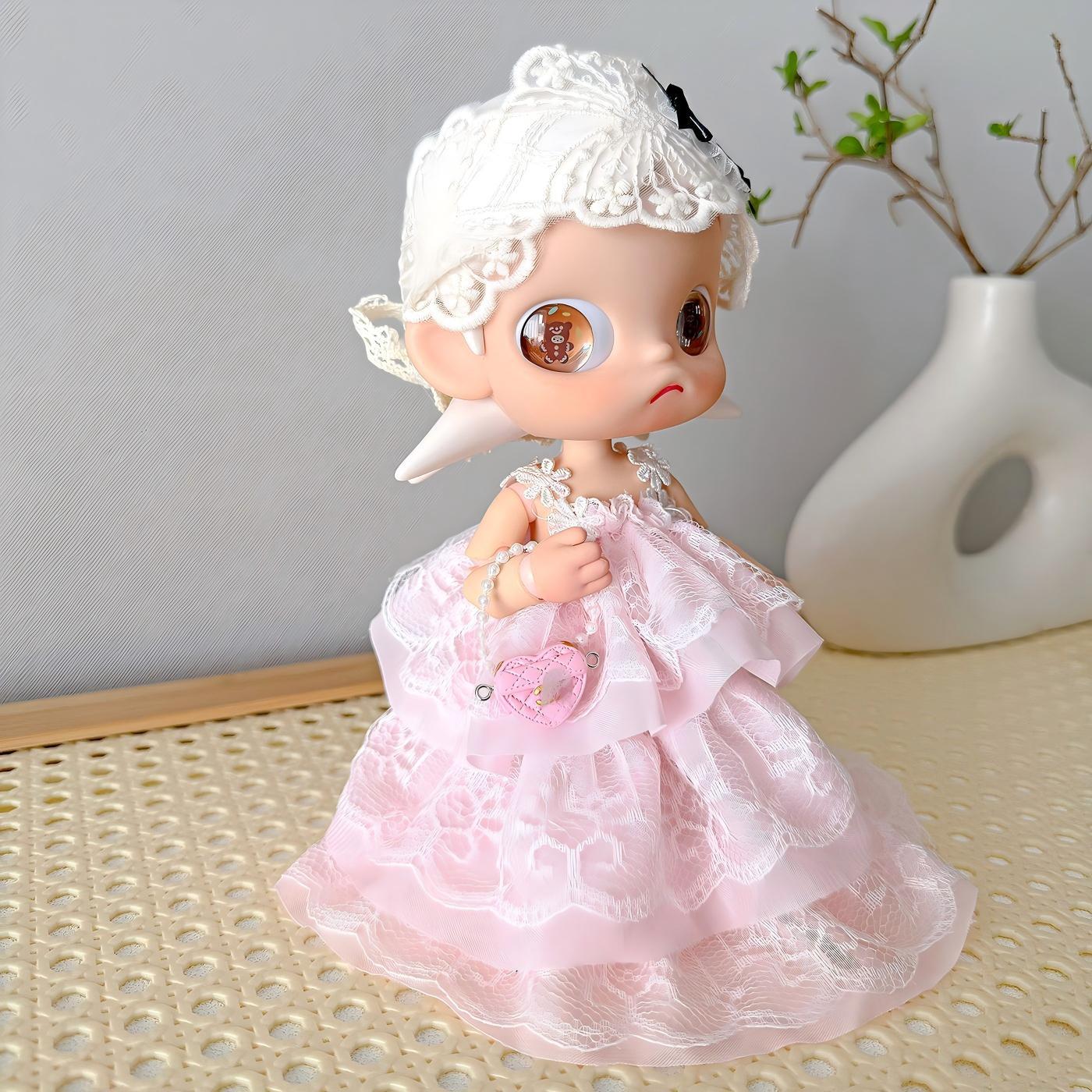 Zsiga&1/8ドール用 チュールフリル ワンピース+ヘアバンド+バッグ ぬいぐるみ エレガント 着せ替え衣装 3点セット 全4色