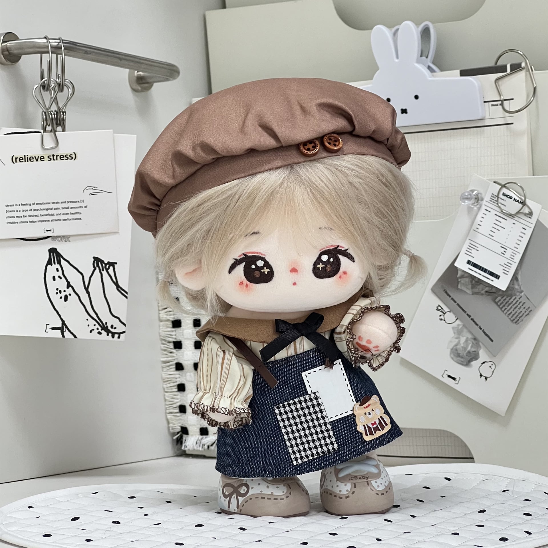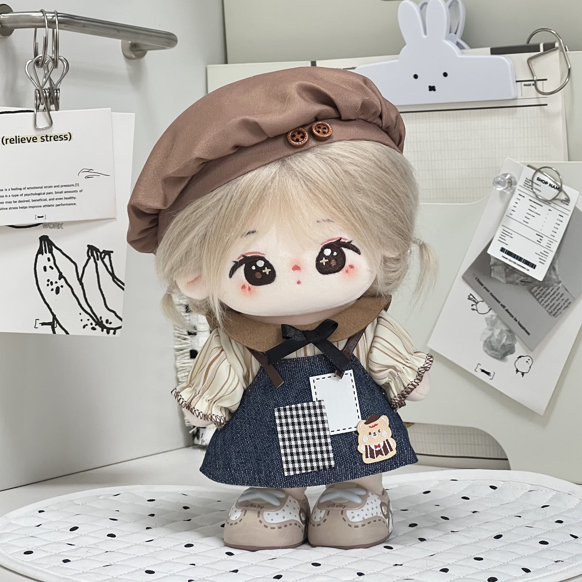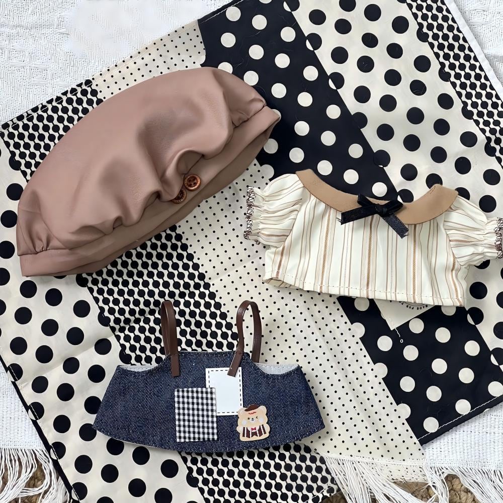 20cmぬいぐるみ用 キャラメルベア デニムサロペットスカート+トップス+帽子 着せ替え衣装 3点セット